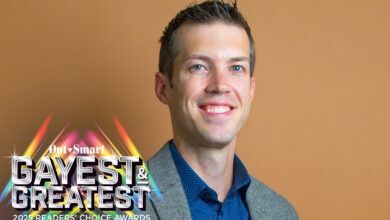 Out of the theater, Miller, who is single, shares his house with his roommate, three Cornish Rex cats (he used to show the alien-looking felines), and Simon, his Italian greyhound. By the time this article is in print, he’ll likely have another “Iggy,” as the dogs are sometimes called, as he is active in the breed rescue and was awaiting a new adoption. Miller also raises orchids and loves to cook. His Sicilian aunt taught him Italian dishes, and he’s added Mexican cuisine to his repertory. “I like spicy foods,” Miller says. “Not spicy hot, just spicy.”