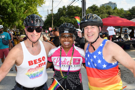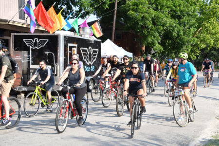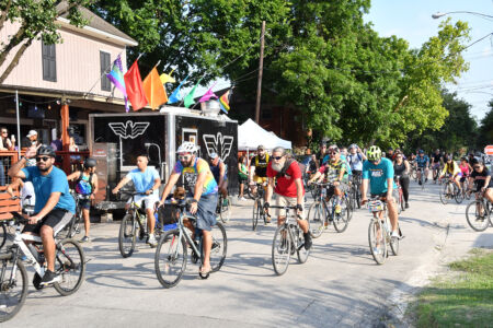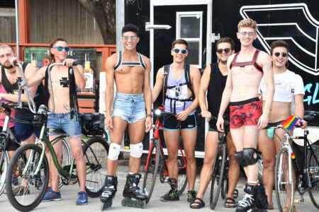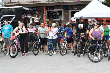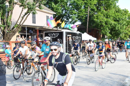 David Loredo and Pride Bike Ride Houston hosted Houston’s annual Pride Bike Ride. The ride began and ended at Eagle Houston, and vendors were on-site selling clothing, art, and other items. The group rides weekly, for more information visit https://www.facebook.com/groups/pridebikeridehouston.