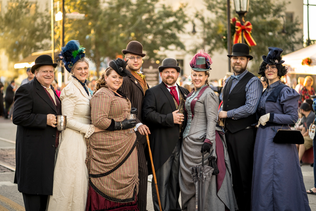 The festivities continue with the lavish Dickens Soiree at the resplendent Bishop’s Palace. Party like it’s 1859 by donning your best petticoat or top hat (or both!) at this lavish ball featuring live music, performances by celebrity guests (including acclaimed re-enactor Ollie Dickens), and acrobats. And a show-shopping buffet of nibbles will include beef wellington puff pastry bites, bacon-wrapped Gulf shrimp with raspberry barbecue sauce, cranberry-nut cheeseballs, and individual cheesecakes.