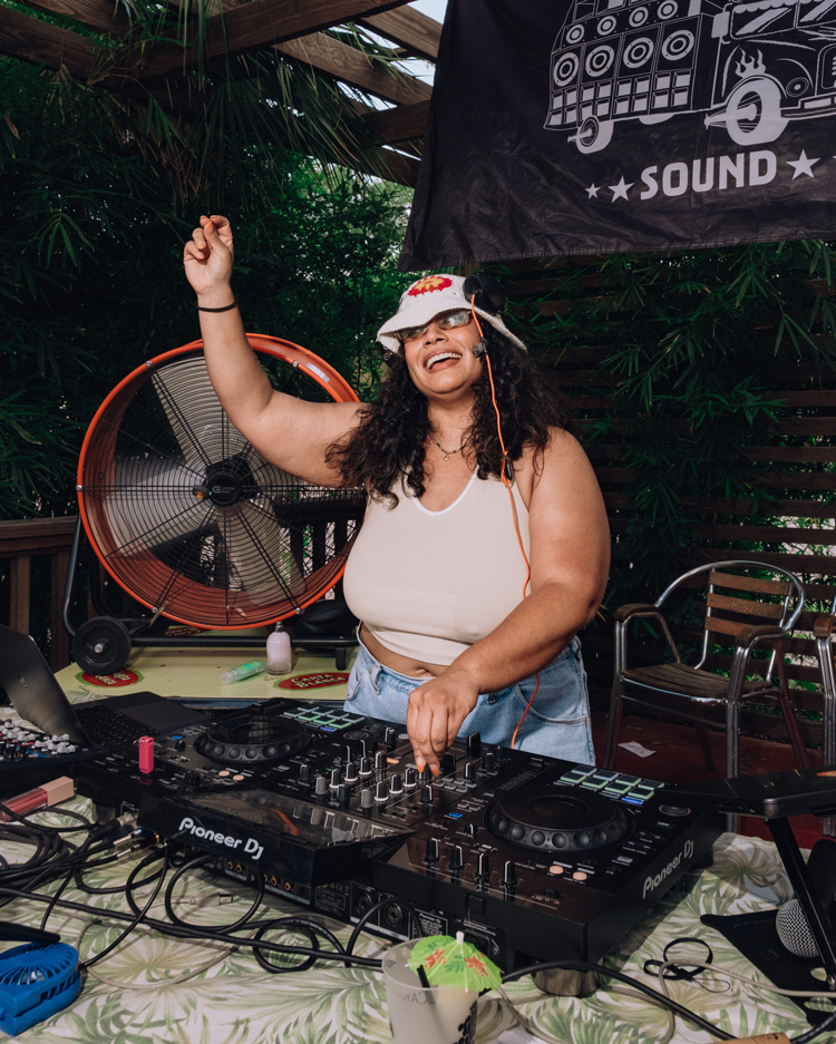When she returned home, she was determined to inject Houston’s Latin music spaces with more Afro-diasporic presence. In 2017, amid the torrential rains of Hurricane Harvey, a friend’s unused DJ controller and a handful of YouTube tutorials became the seeds of a now-prospering career. By 2019, she’d launched Tumbao, her first weekly residency at The Flat, carving out space for Afro-Latin music and artists in a scene that lacked representation. She soon decided to build on that achievement.
