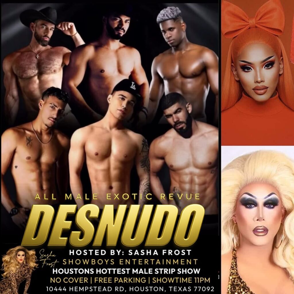 Los Robles Bar and Grill presents Desnudo, an all-male exotic revue. Hosted by Sasha Frost and featuring dancers from Showboys Entertainment. 10444 Hempstead Rd. 11 p.m.