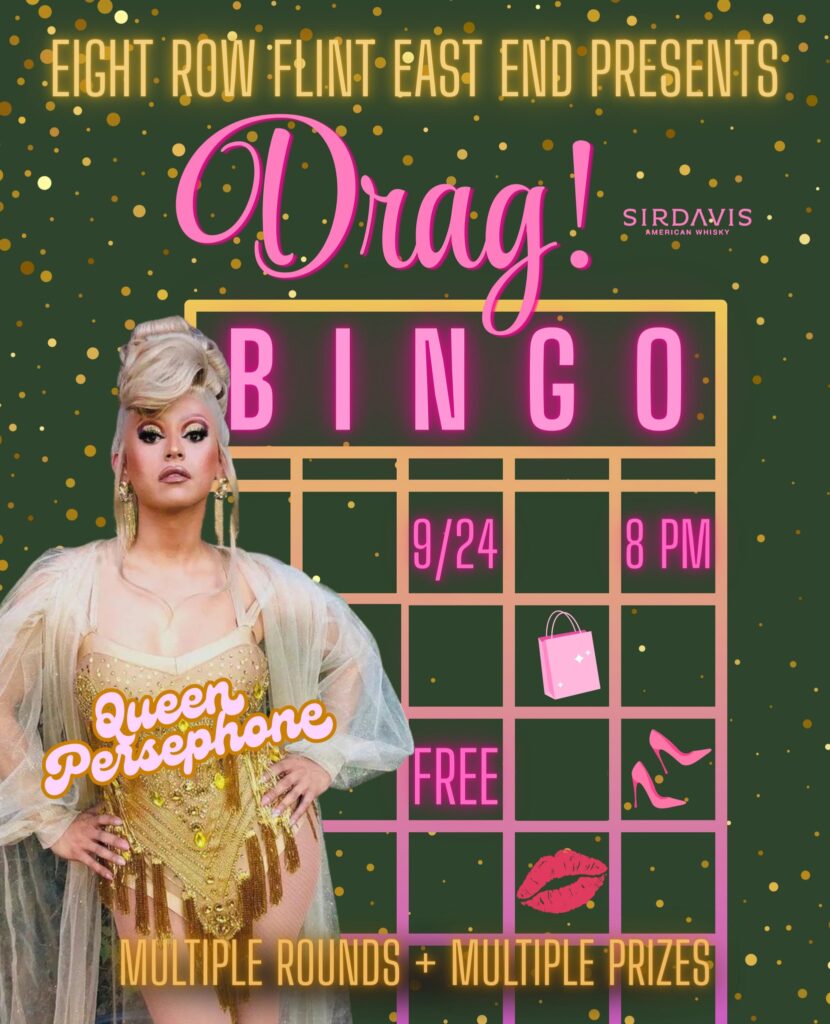 Queen Persephone hosts Drag Bingo at Eight Row Flint East End. Expect big laughs, bigger prizes, and a night that goes all the way off. 3501 Harrisburg Blvd. 8 p.m.