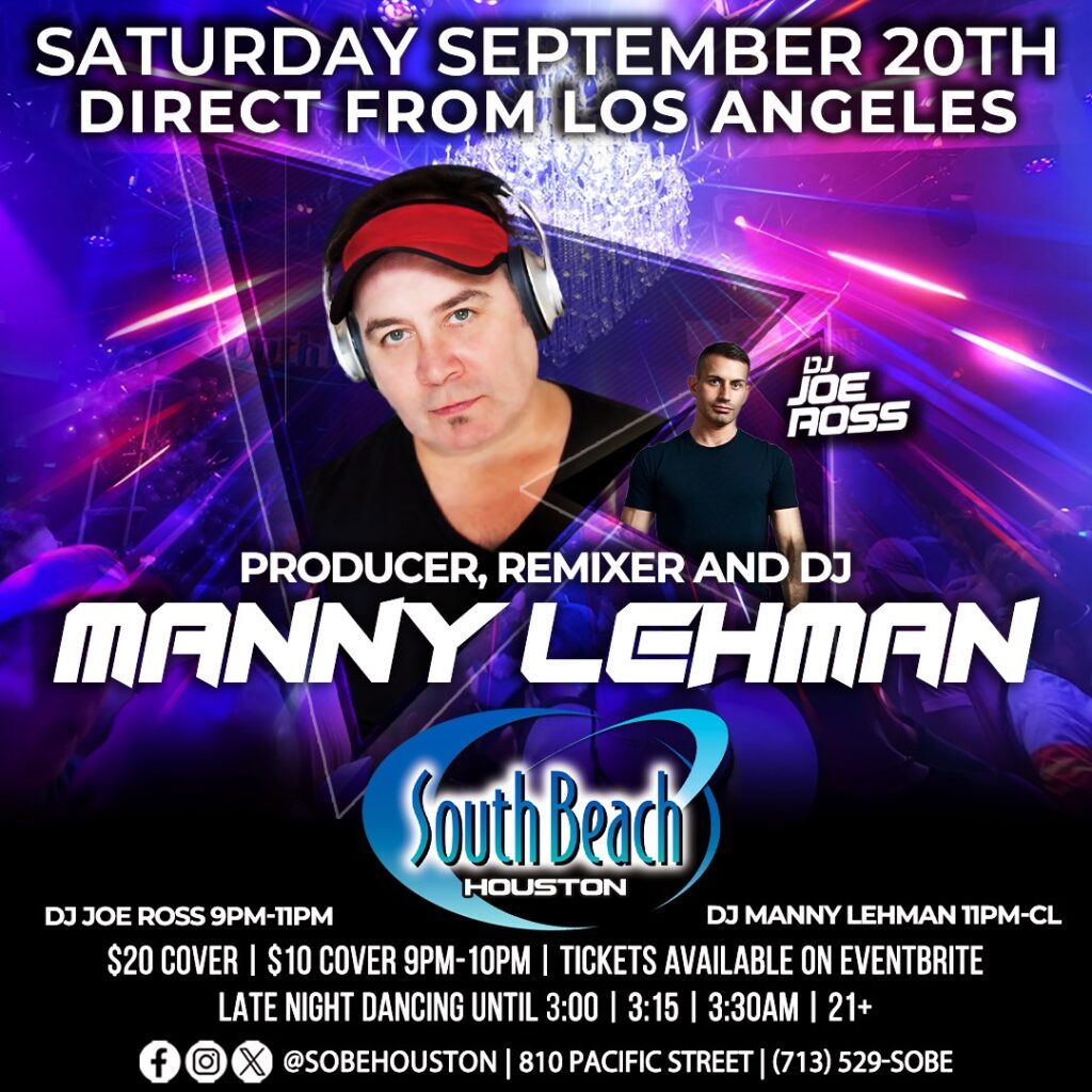 South Beach Nightclub proudly welcomes back the legendary DJ Manny Lehman. Get ready for a night of unforgettable beats, legendary vibes, and nonstop dancing with one of the greats. 810 Pacific St. 11 p.m.