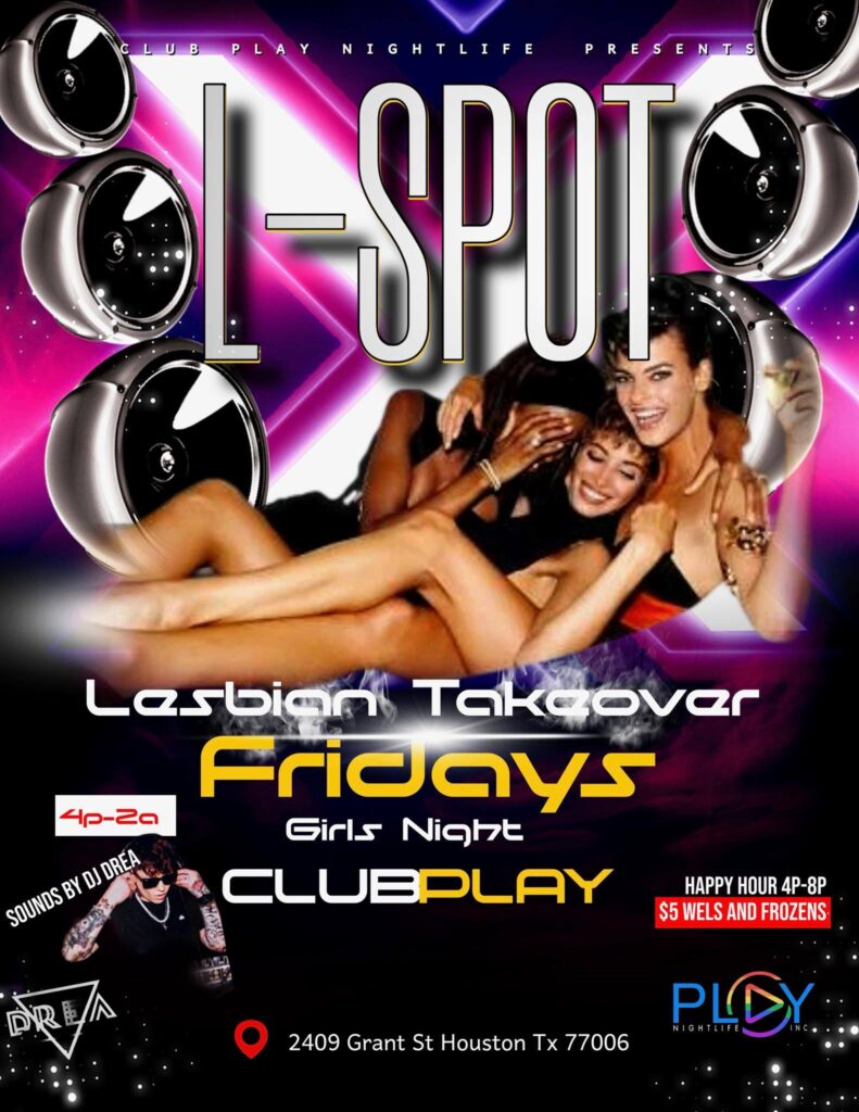Club Play Nightlife hosts a Friday night lesbian takeover, L-Spot, with sounds by DJ Drea. Happy hour drink specials 4-8 p.m. 2409 Grant St.