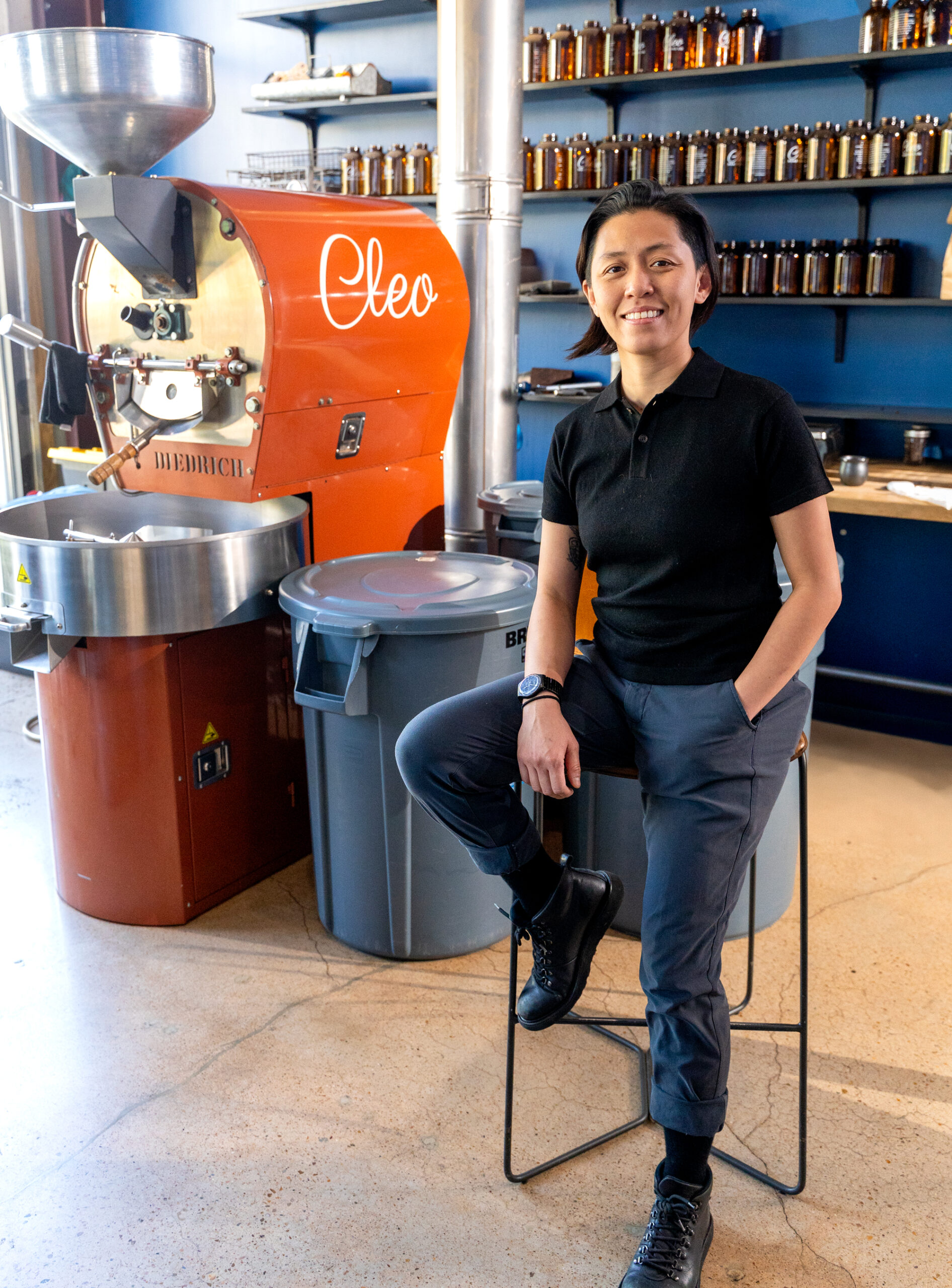 For Cleo Roasting’s head roaster Vivian Nguyen, better known as Vi (they/them), coffee is both a craft and a calling. “I source my coffees seasonally, making sure that everything is in season and fresh. As the head roaster, my role involves sourcing and profiling the green coffee, which means creating the roasting profiles for espresso, filter coffee, and single-origin coffees,” Vi explains. “Also, I host cuppings, or tastings.