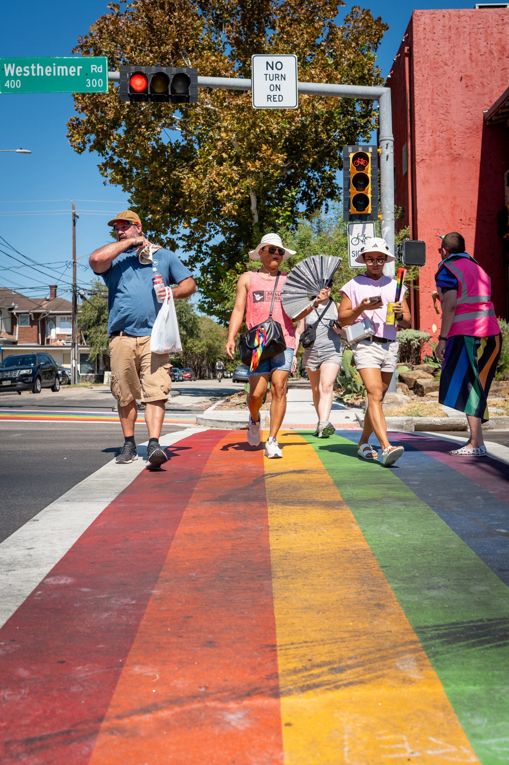 Installed in 2017, the crosswalks were funded by Pride Houston 365 and designed as both a traffic safety feature and a public celebration of Houston’s LGBTQ history. The colorful intersection quickly became an emblem of Montrose, the neighborhood often referred to as the city’s “gayborhood,” long known for its culture of inclusion, activism, and pride.