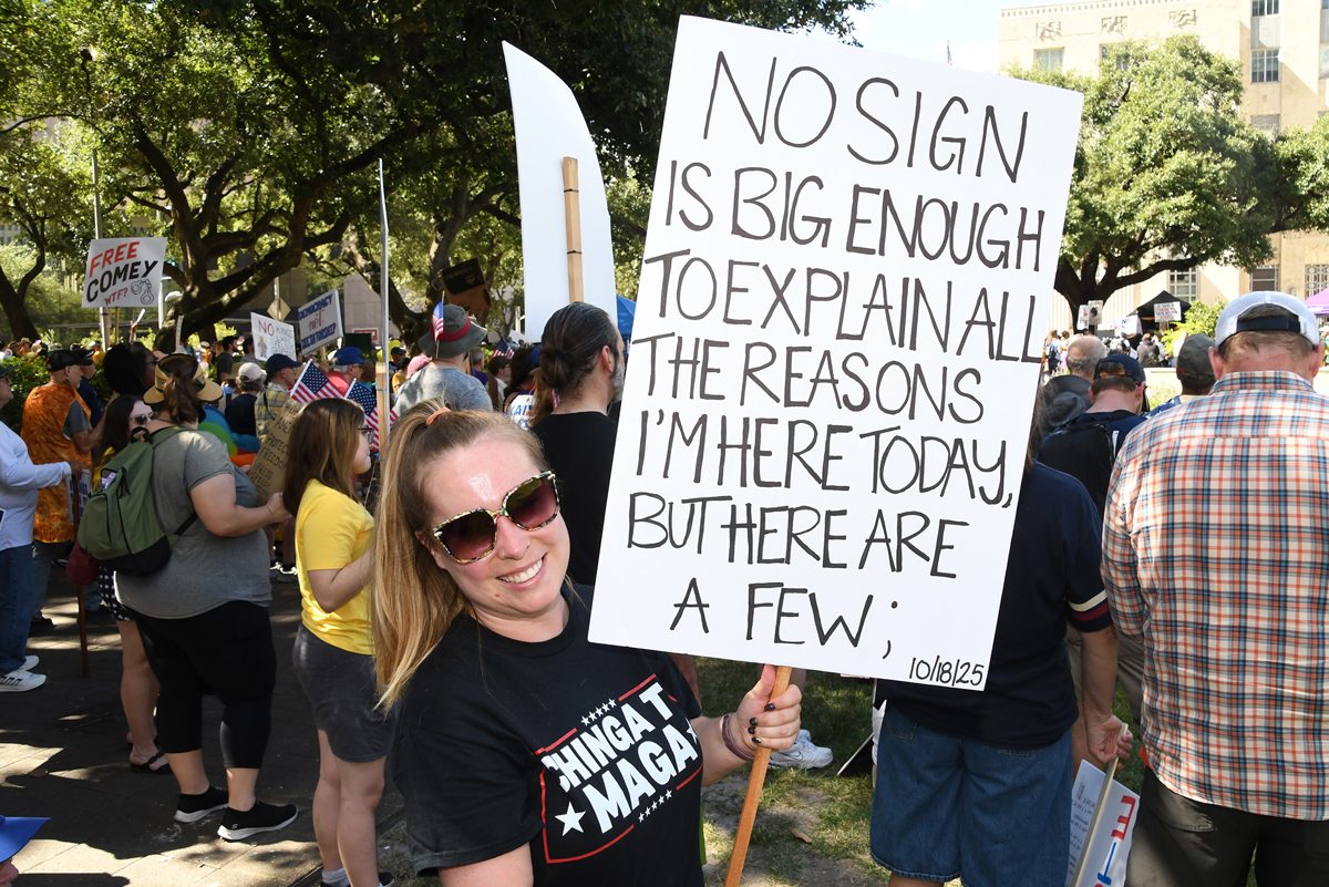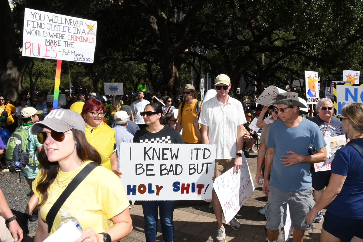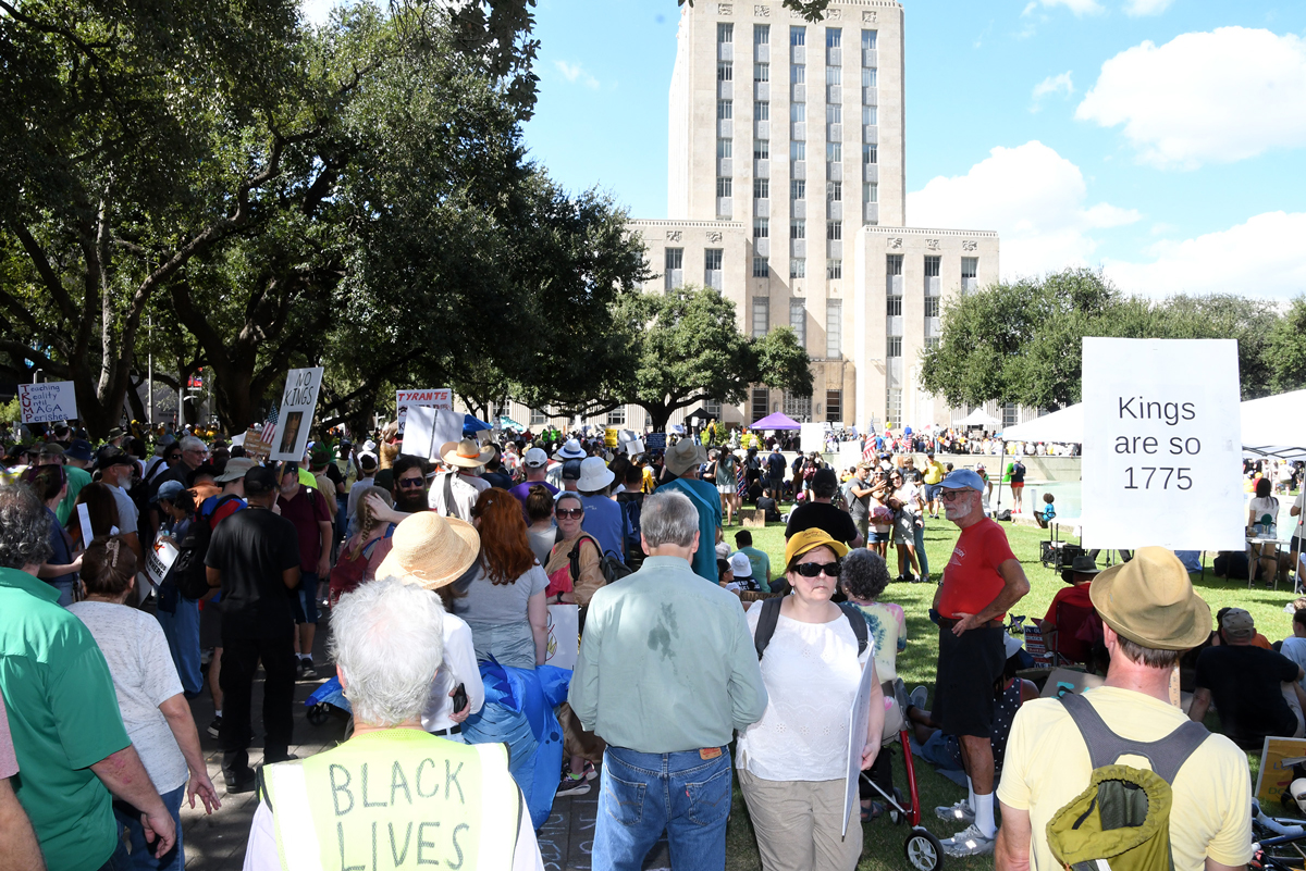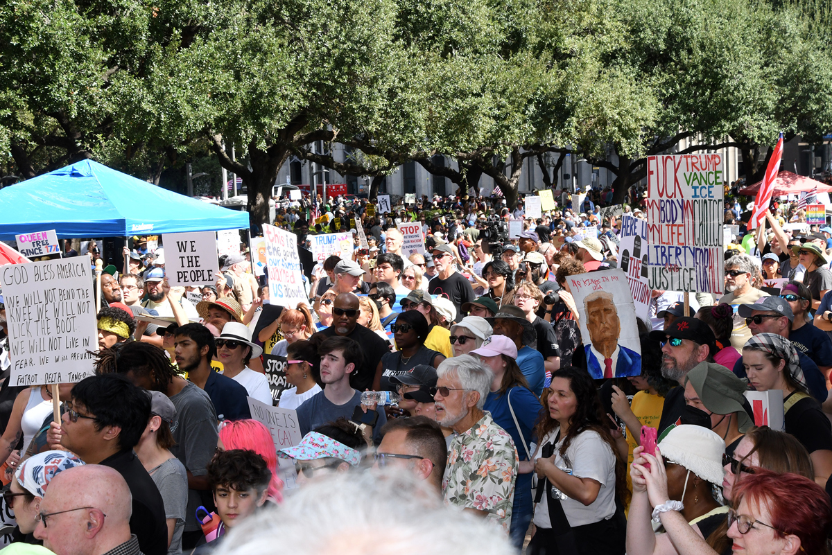 Demonstrators filled the plaza holding signs, waving flags, and calling for action on issues ranging from reproductive justice to immigrant and LGBTQ rights to voting access. The crowd reflected Houston’s diversity and its deep commitment to civic engagement.