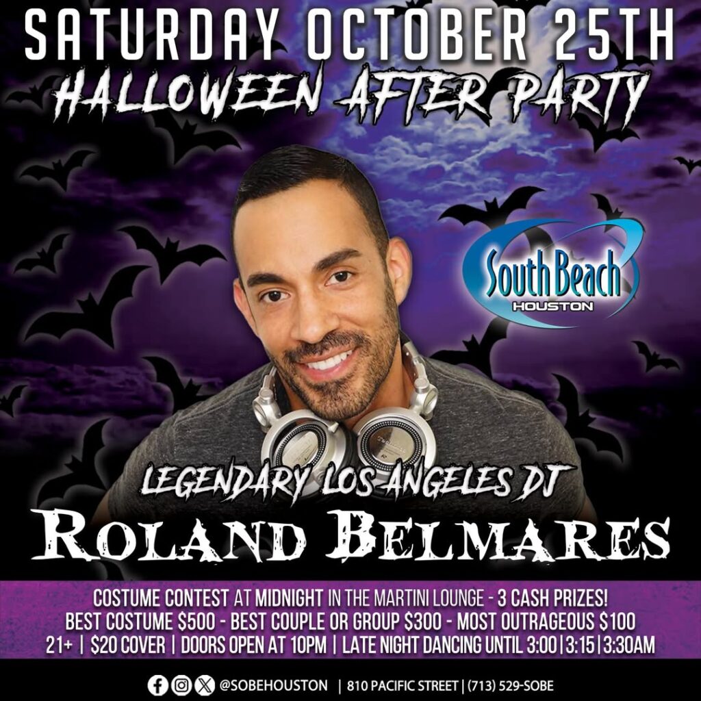 South Beach Houston welcomes the return of legendary DJ Roland Belmares for a Halloween after party featuring a costume contest with three cash prizes. 10 p.m.