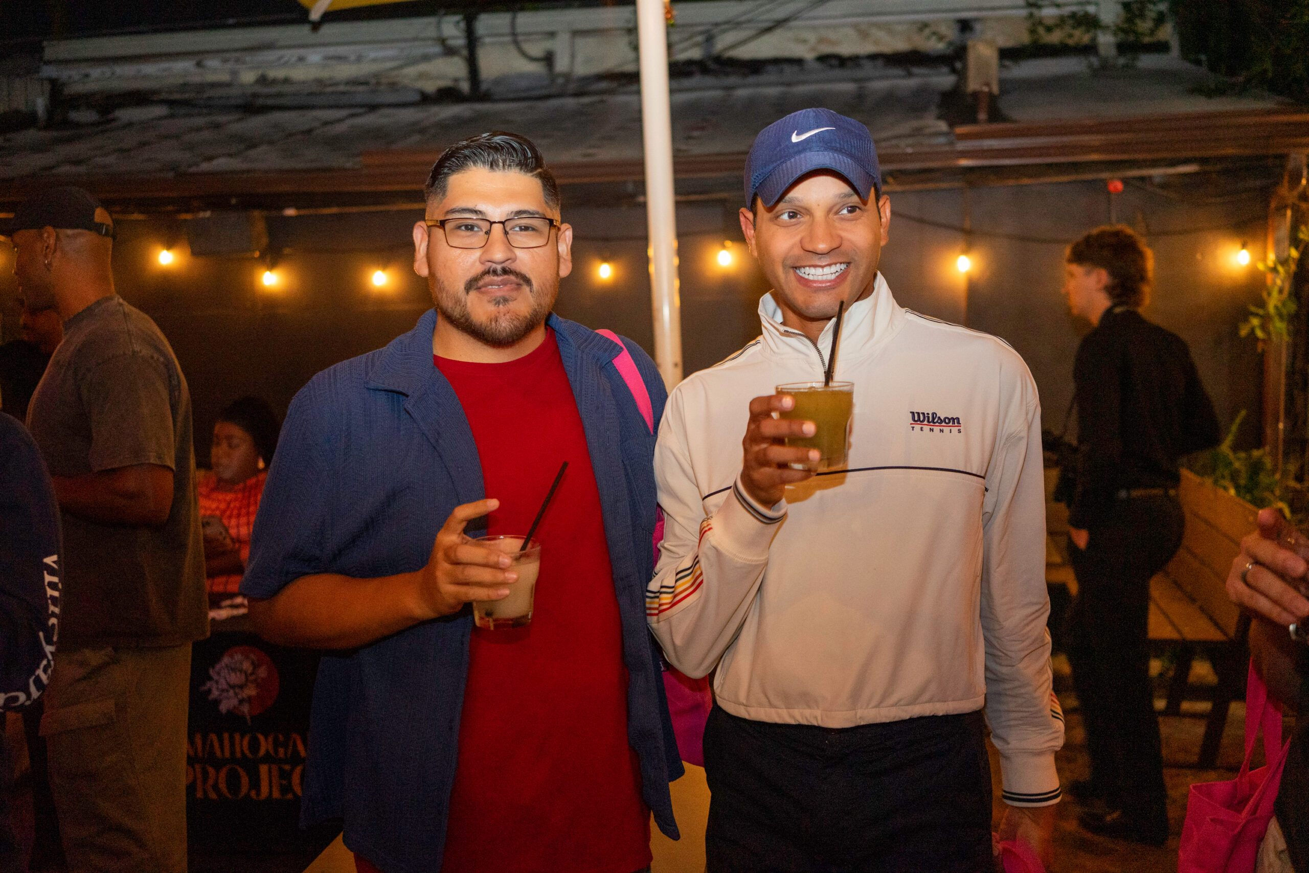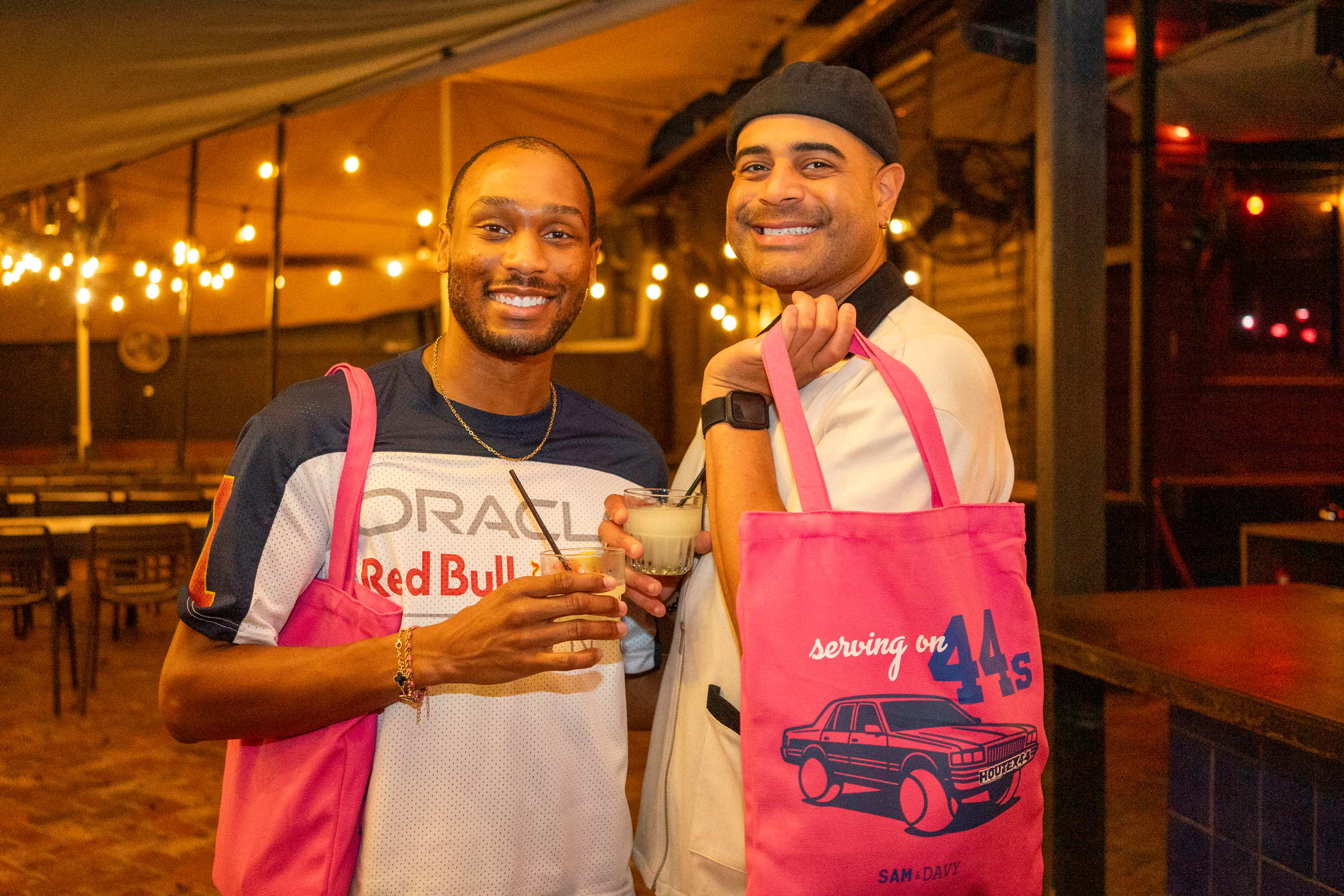 The festivities opened with the annual Player Party at Bar Boheme, where guests mingled, met their competitors, and picked up their player bags. Thanks to generous support from LMNT, Tennis Express, Jaix Fain, and others, each bag included signature HOUTEX items—hat, towel, and T-shirt—along with contributions from this year’s beneficiary, The Mahogany Project Inc. A standout feature came from artists Sam and Davy, who designed and donated custom tote bags and hosted a booth showcasing their original work.