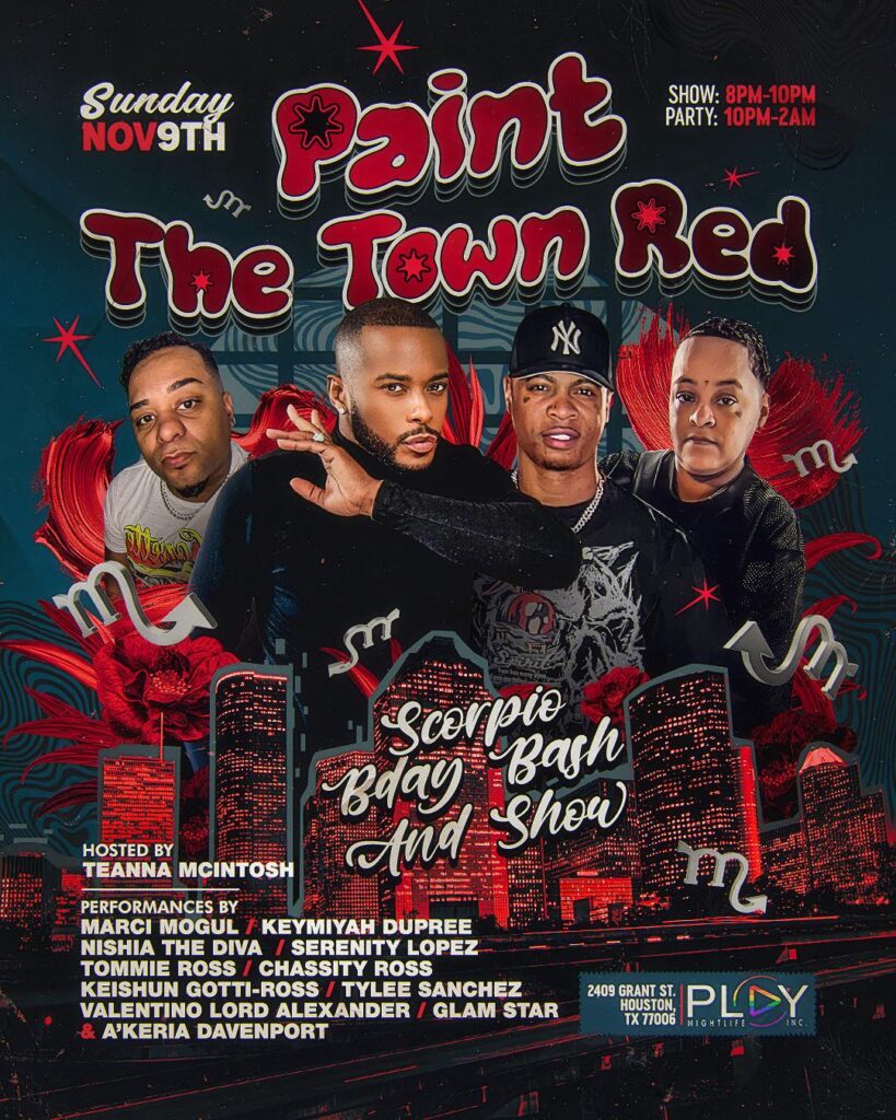 Play Nightlife presents Paint the Town Red, a Scorpio Birthday Bash hosted by TeAnna McIntosh with performances by Marci Mogul, Keymiyah Dupree, Nishia the Diva, Tommie Ross, and more. 2409 Grant St. 8 p.m.