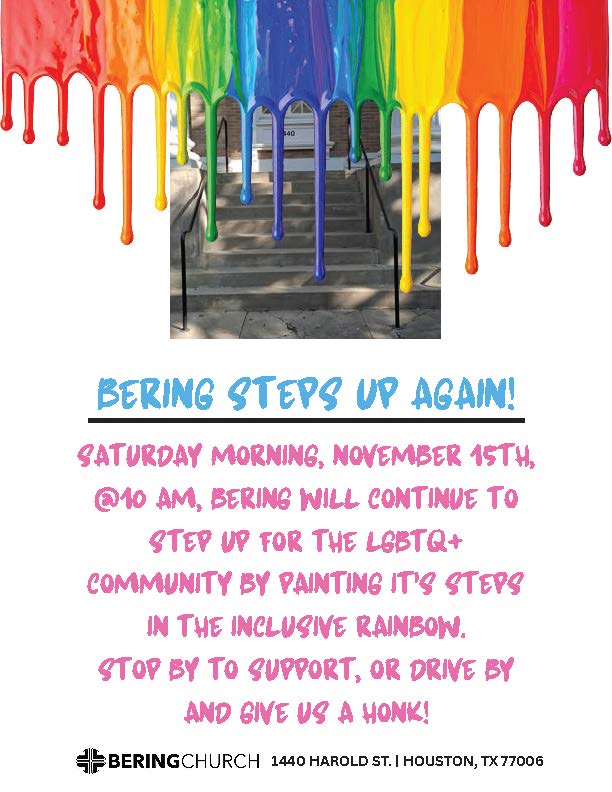 Bering Church shows unwavering support for the LGBTQ community by painting its steps in the colors of the inclusive rainbow. Volunteers are welcome. 1440 Harold St. 10 a.m.