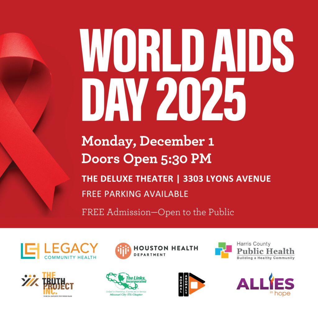 In partnership with Houston Health Department, Harris County Public Health, The T.R.U.T.H. Project, The Links, Incorporated – Missouri City Chapter, The Normal Anomaly Initiative, and Allies in Hope, this community gathering brings together leading HIV experts, advocates, and local organizers for a powerful evening of dialogue, reflection, and action. DeLUXE Theater, 3303 Lyons Ave. 5:30 p.m.