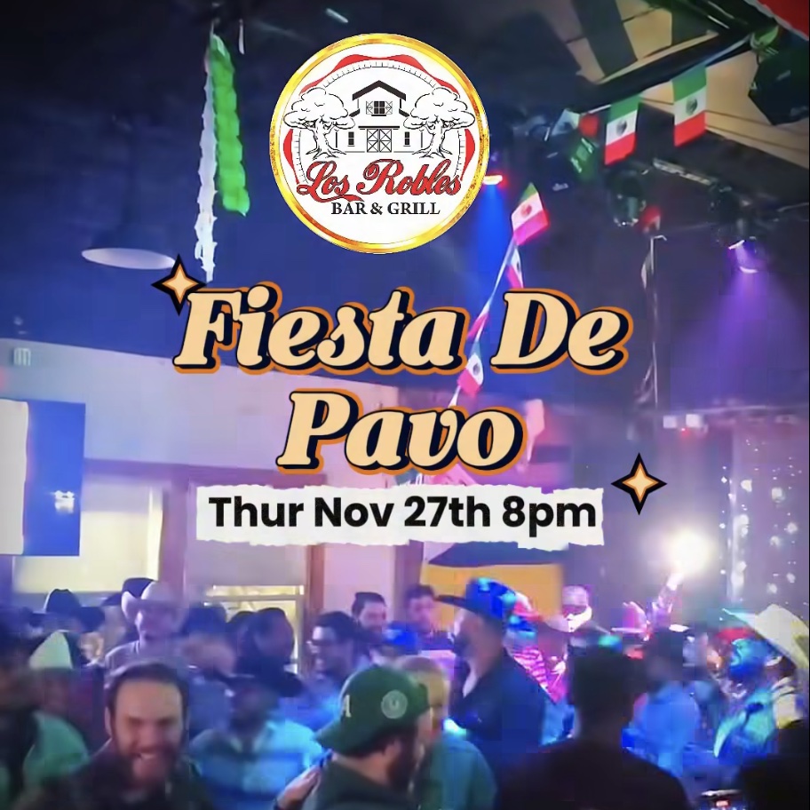 Los Robles hosts Fiesta de Pavo and community potluck. Turkey will be provided. Bring a favorite side dish to share. Later, DJ Toma gets the crowd moving with cumbia, Latin pop, reggaeton, y puro party vibe. 10444 Hempstead Rd. 8 p.m.
