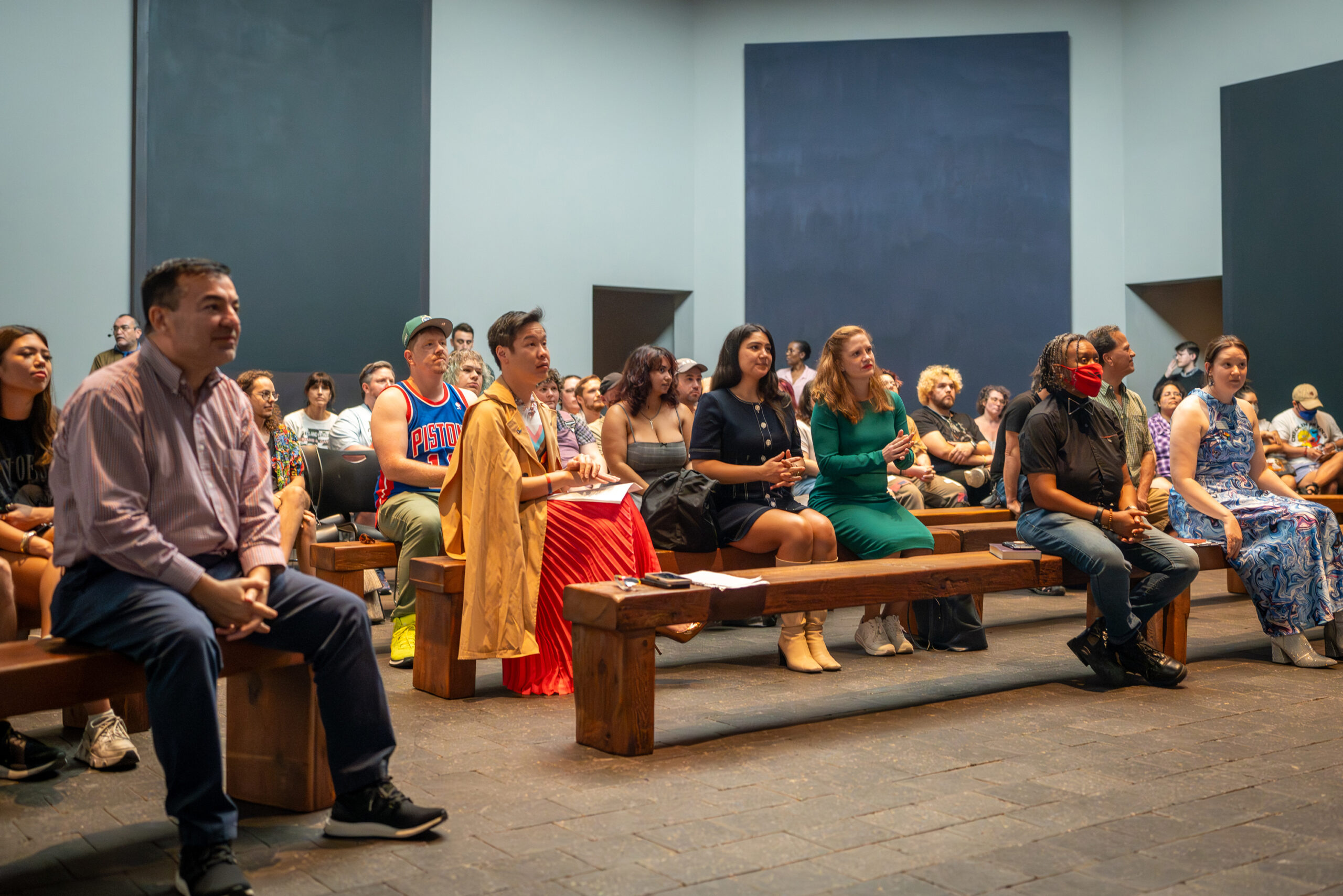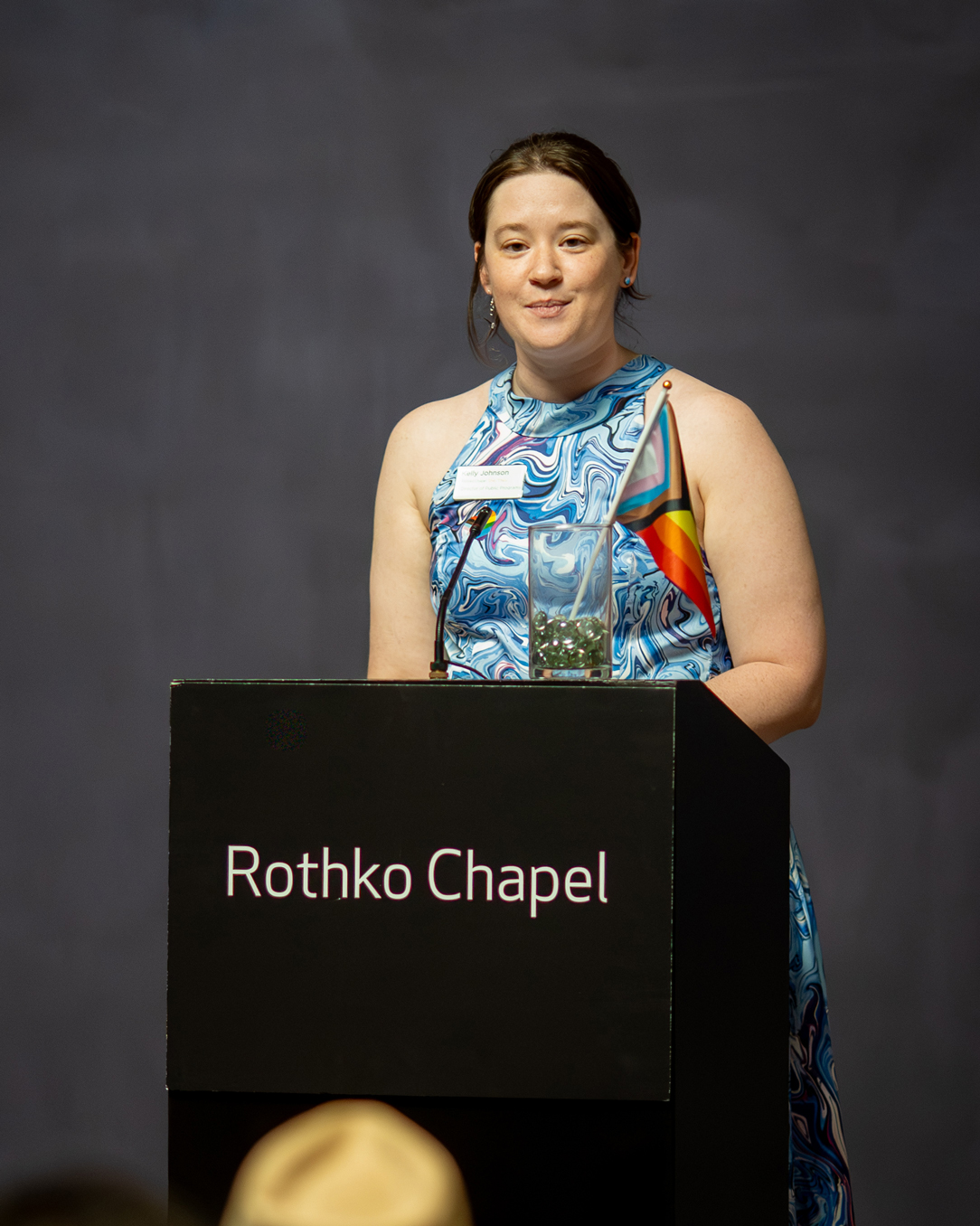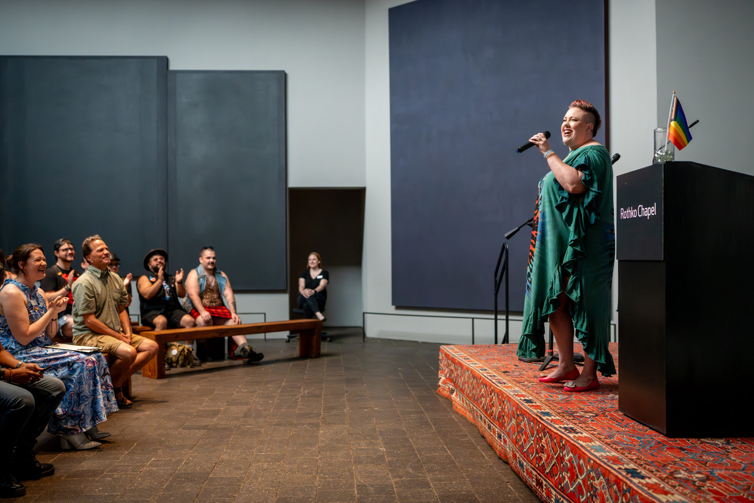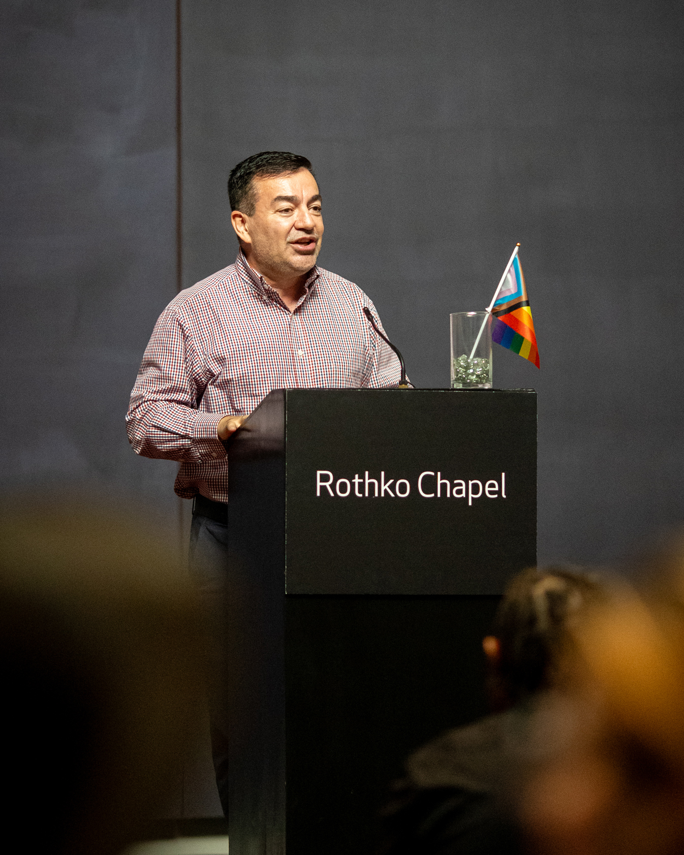 Inside the Chapel sanctuary, audiences settled in as a lineup of poets, musicians, and fashion-forward performers took the mic. Speakers included Texas State Senator Molly Cook and Kevin Nguyen, the Montrose Center’s Director of Community Engagement. A limited open mic offered LGBTQ poets and musicians a space to share new work, while the fashion contest brought bold looks to the theme “Revolution of Joy,” with categories for Best Design, Wore It Best, and Best Drag. Winners each received $100 gift cards.