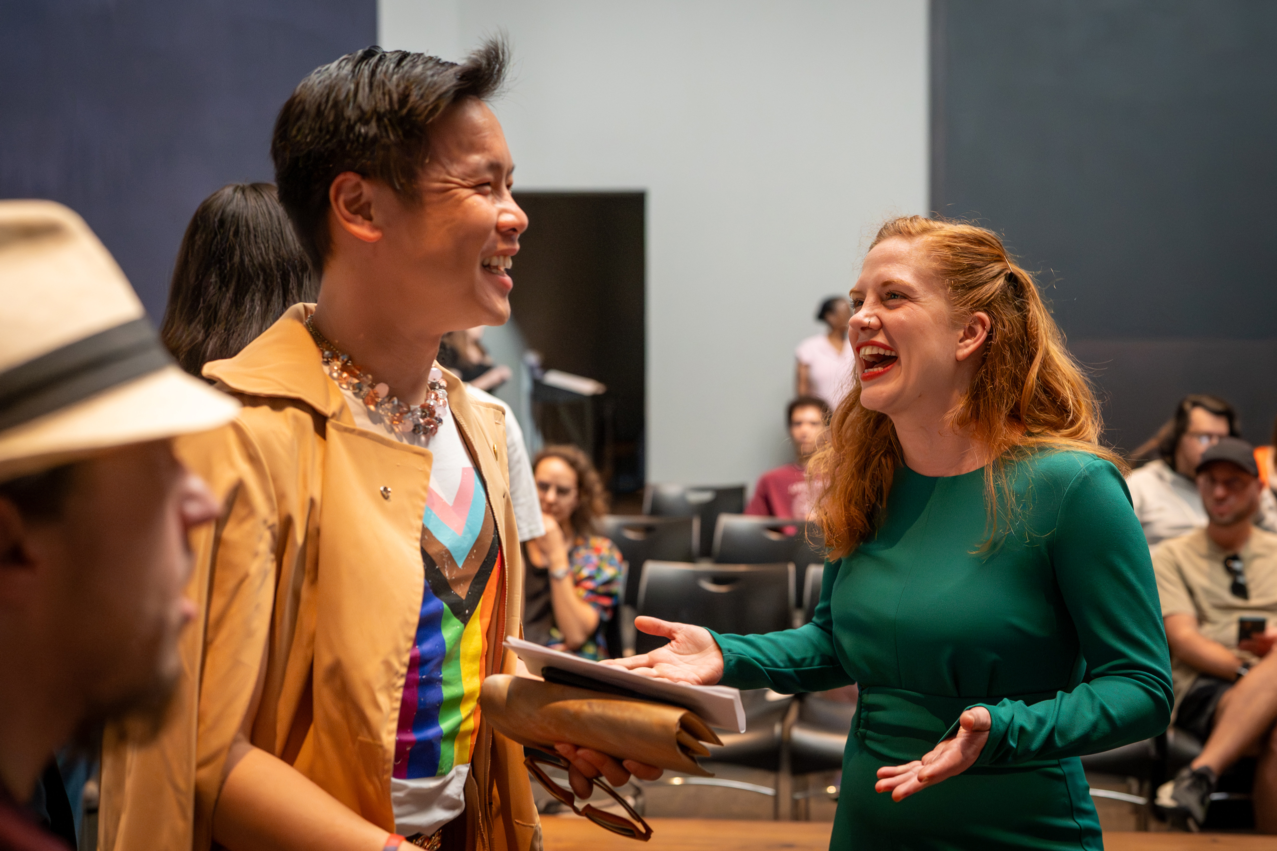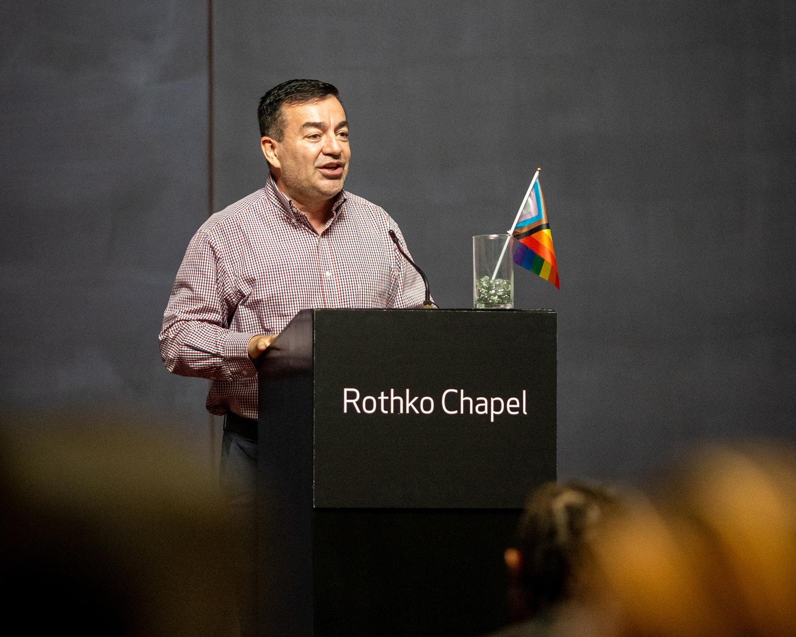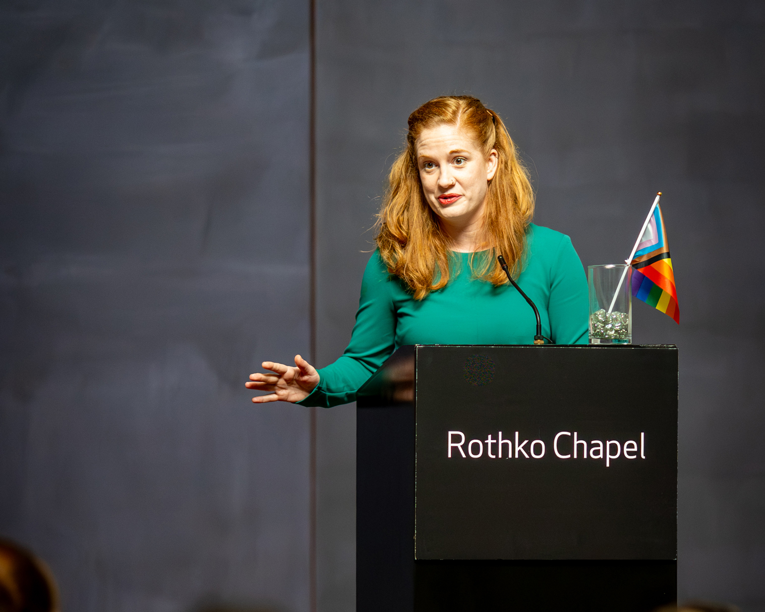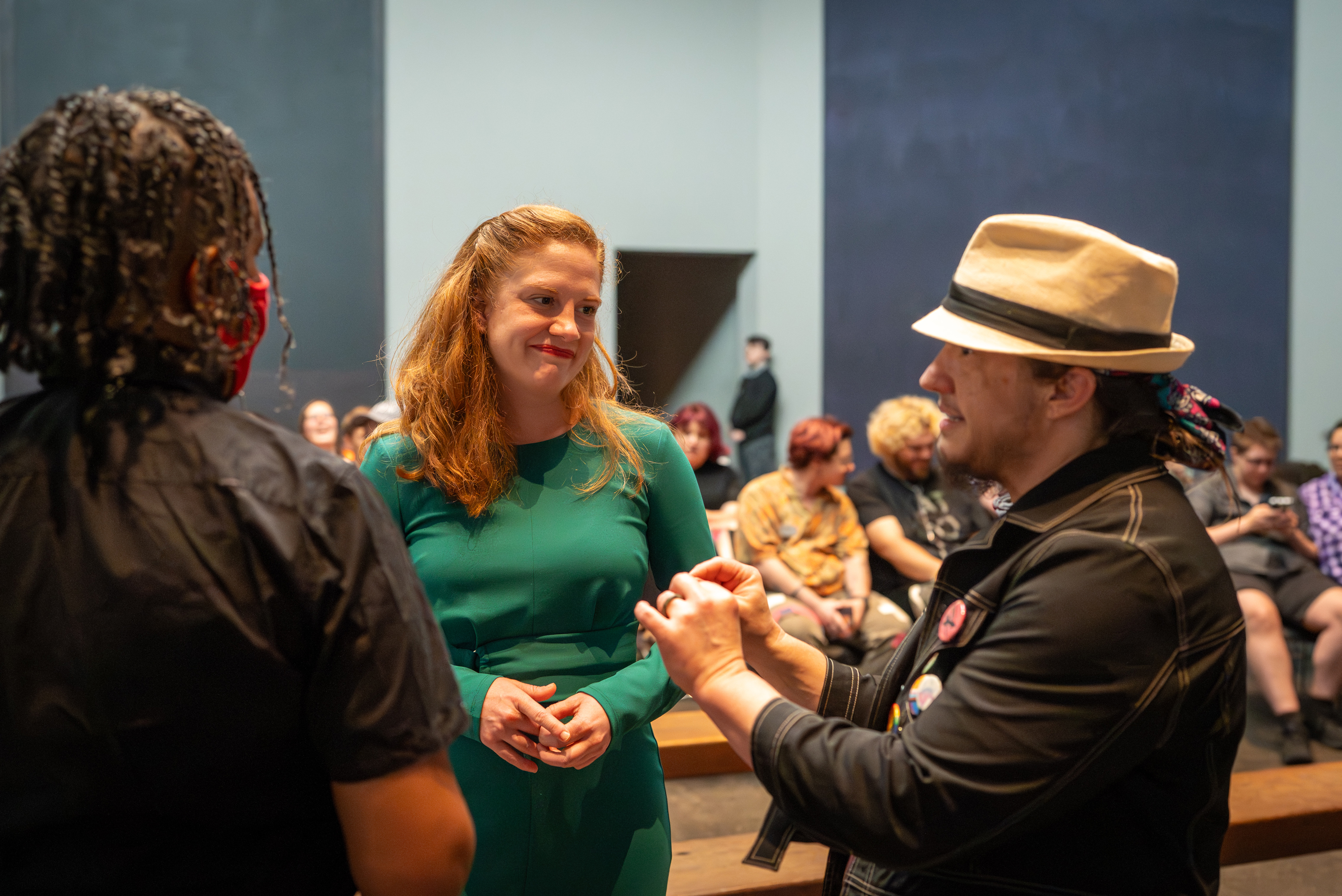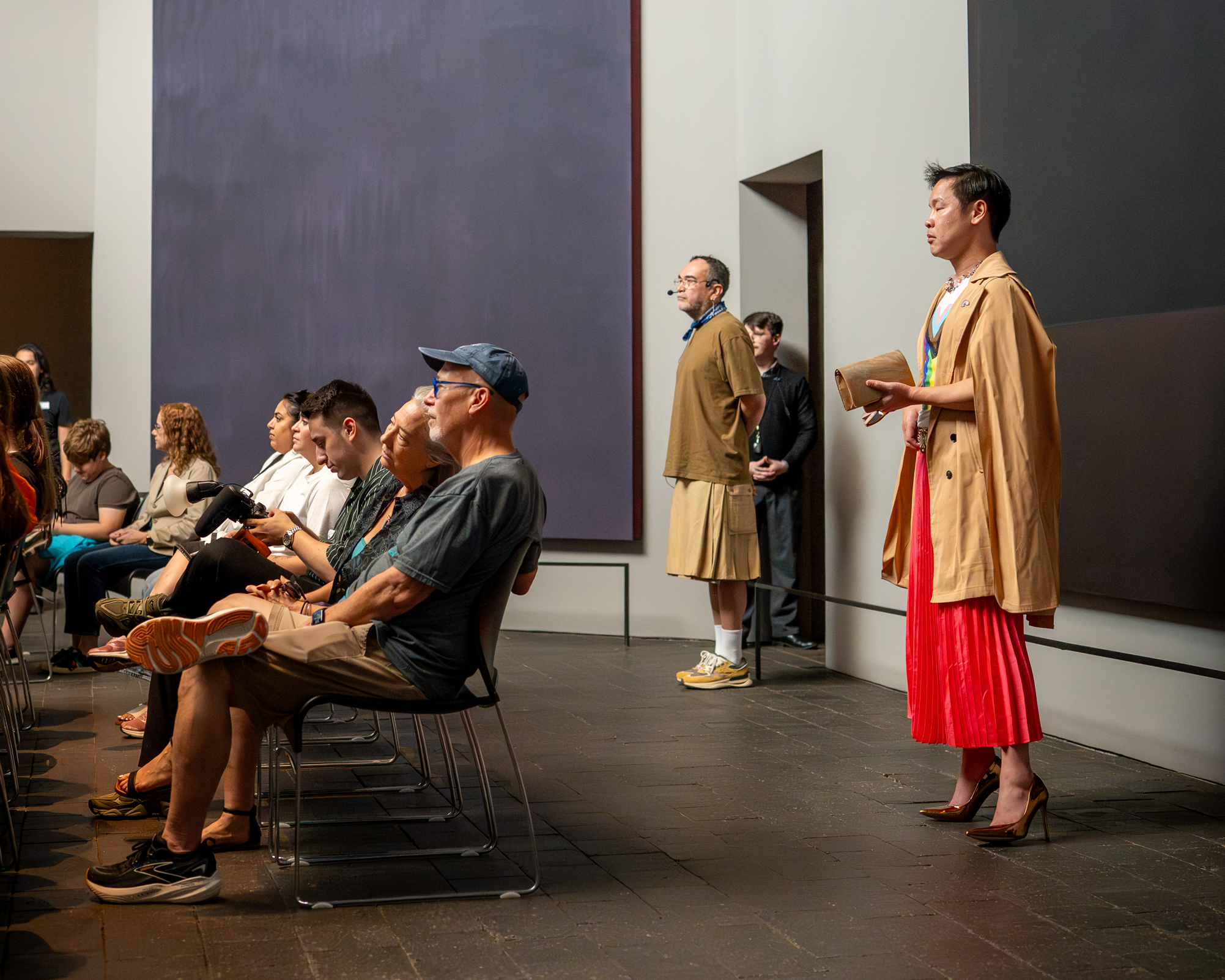 Inside the Chapel sanctuary, audiences settled in as a lineup of poets, musicians, and fashion-forward performers took the mic. Speakers included Texas State Senator Molly Cook and Kevin Nguyen, the Montrose Center’s Director of Community Engagement. A limited open mic offered LGBTQ poets and musicians a space to share new work, while the fashion contest brought bold looks to the theme “Revolution of Joy,” with categories for Best Design, Wore It Best, and Best Drag. Winners each received $100 gift cards.