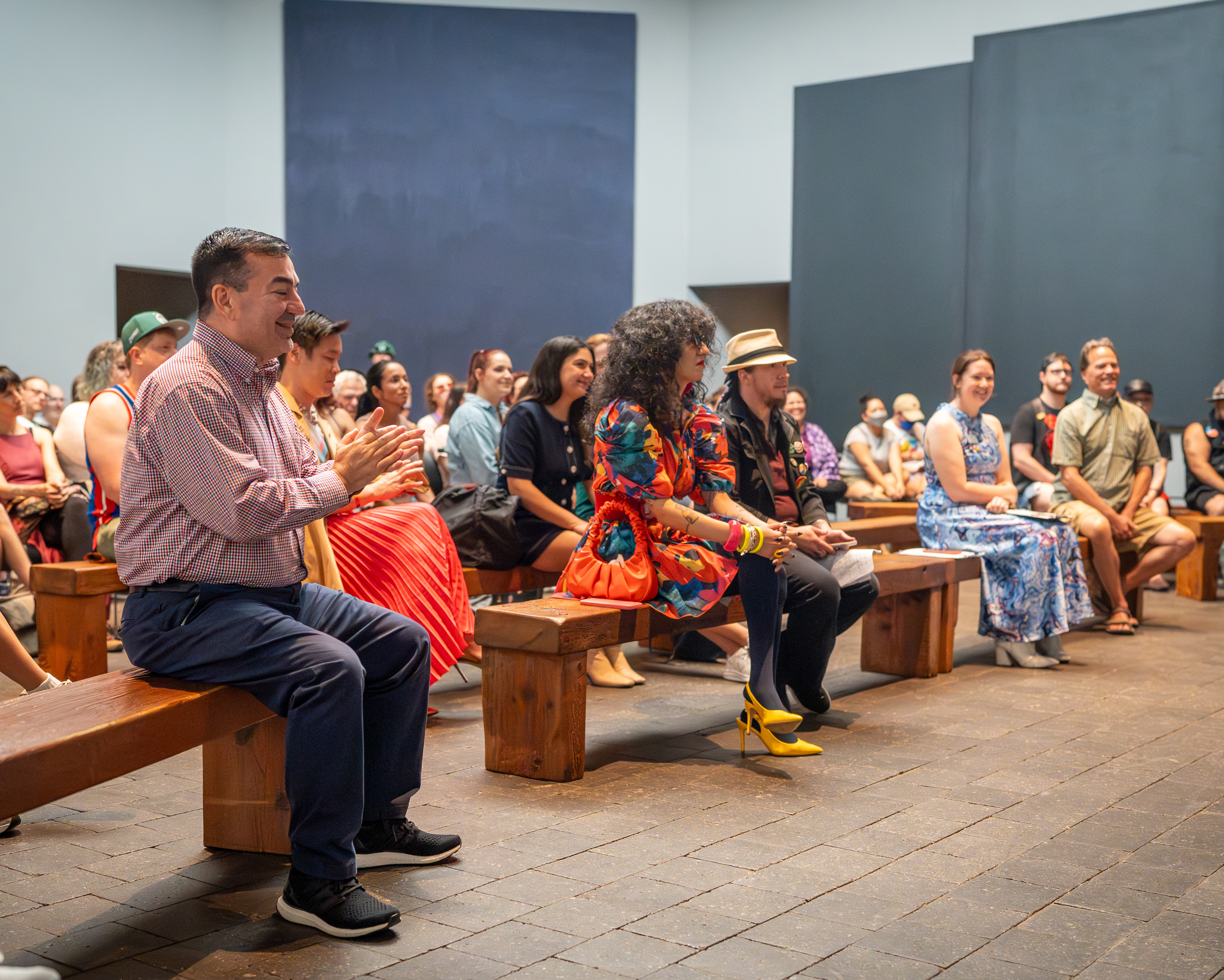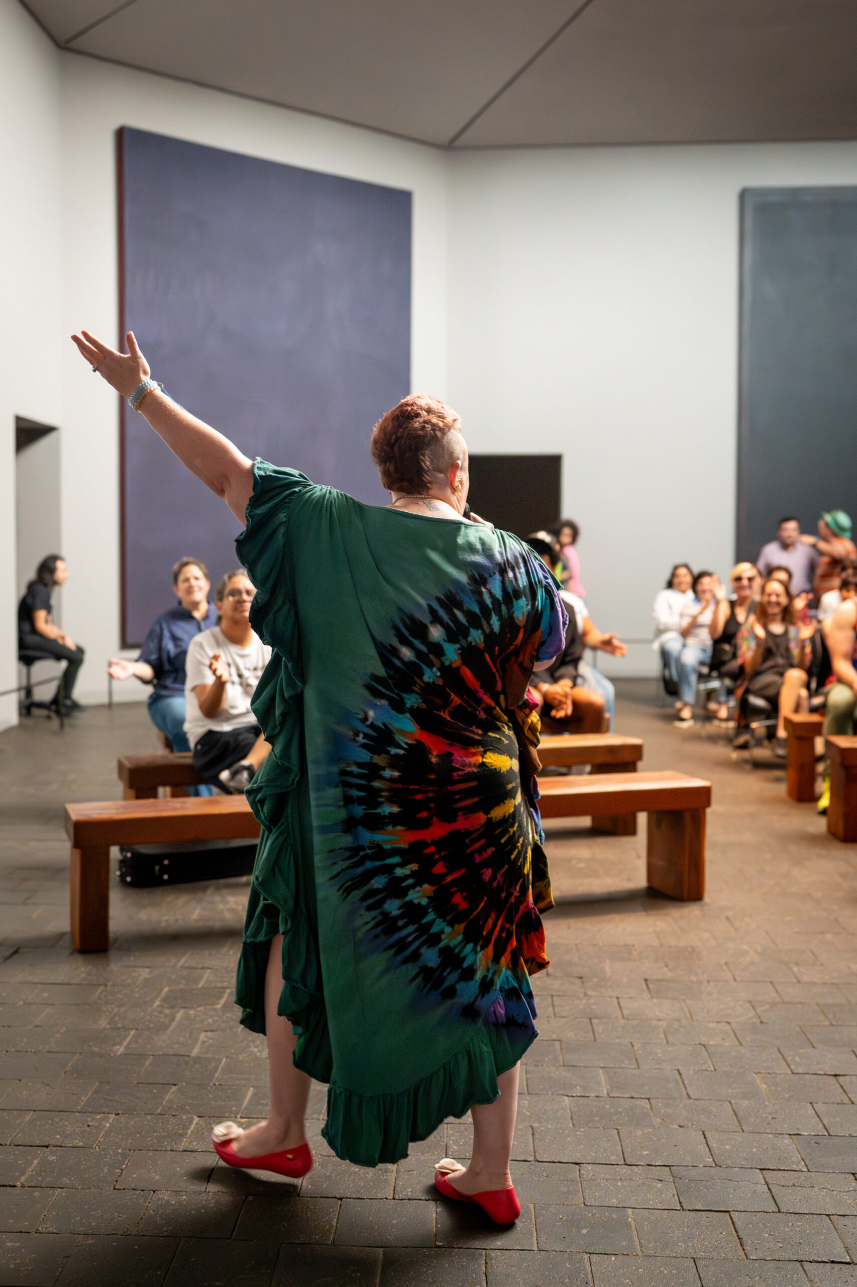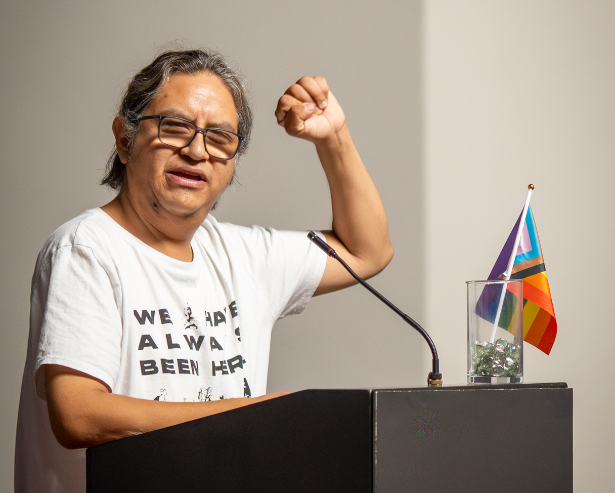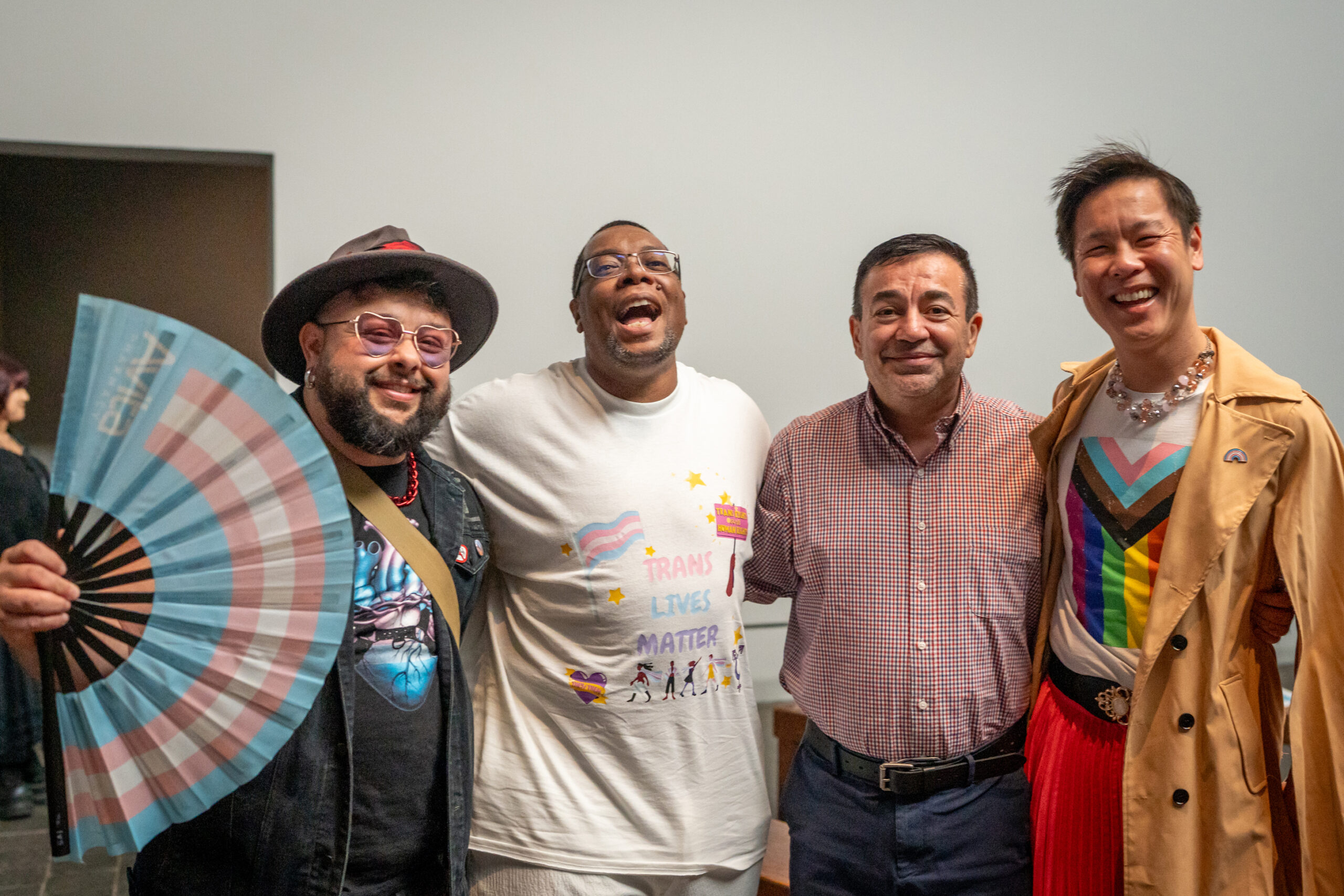 Outside on the plaza, festival tables showcased visual art and resources from trans-led organizations, creating space for conversation, connection, and community care. Spanish interpretation by Yudith Azareth and Jorge Galvan ensured the program remained accessible, while Q Patrol provided on-site community safety.