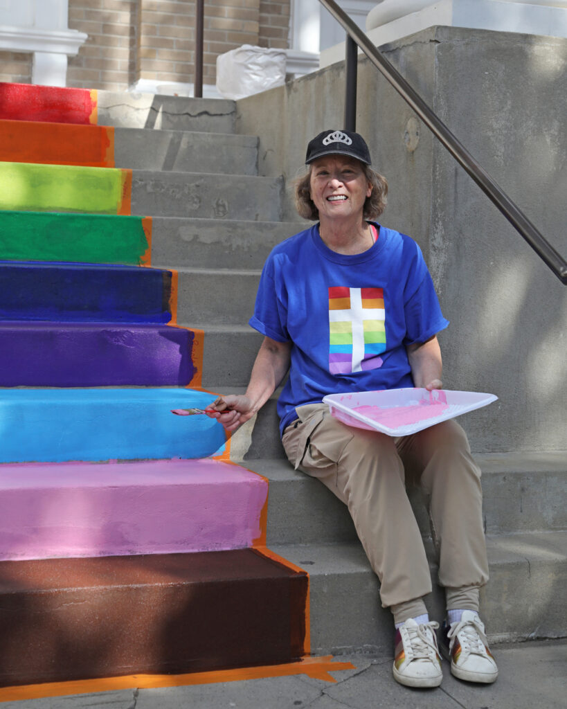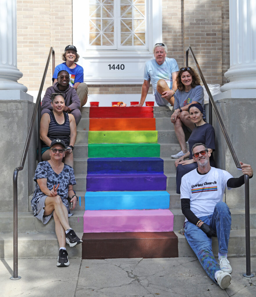 In today’s climate of erasure, the stairs symbolize what the church has lived for decades: “We’re not going to allow anyone to take away the gift that LGBTQ people are to our community. And so this is where we stand.”