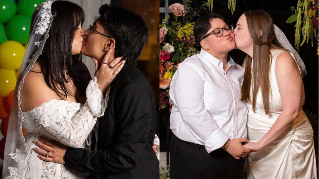 “It is a deep honor to get to serve alongside these phenomenal women,” Hernández said. “They lead in a guiding community, but as a young judge, I get to feel very inspired to work with them and to lead and guide alongside them, and to stand so true in our identities together.”Each of the judges took a turn in leading the ceremony for the two couples, with Eiserloh declaring, “What we create here together is … a reminder that love not only collides between two people, but expands outward to strengthen our communities.”