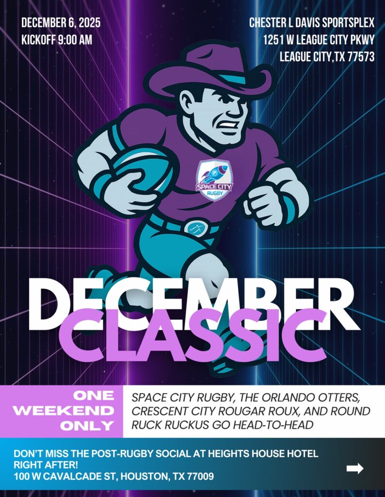 Space City Rugby, the Orlando Otters, Crescent City Rougar Roux, and Round Rock Ruckus go head to head in the Space City December Classic. Lynn Gripon Park at Countryside Park, 100 Alderwood St, League City. 9 a.m.