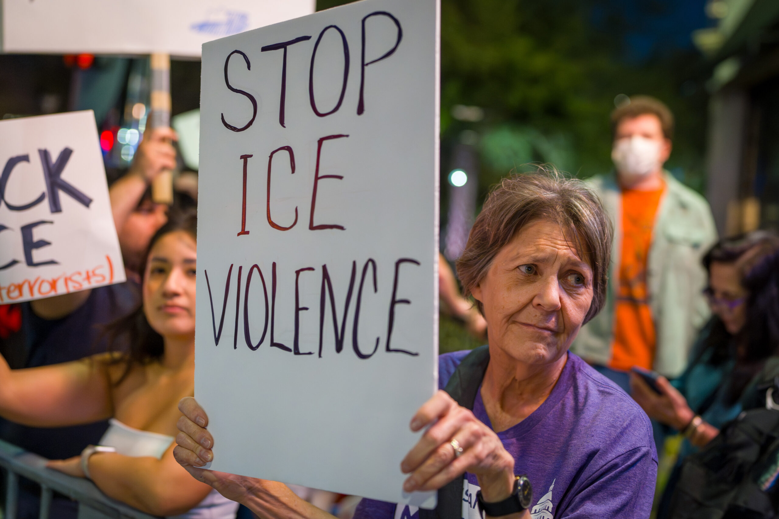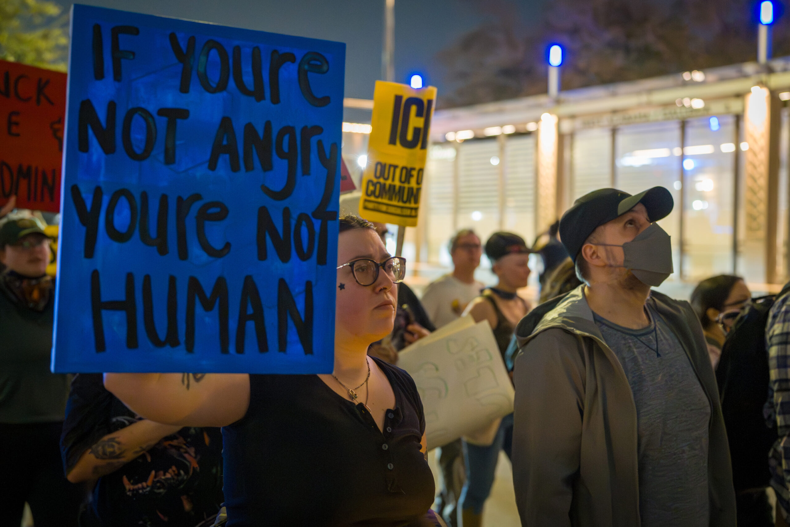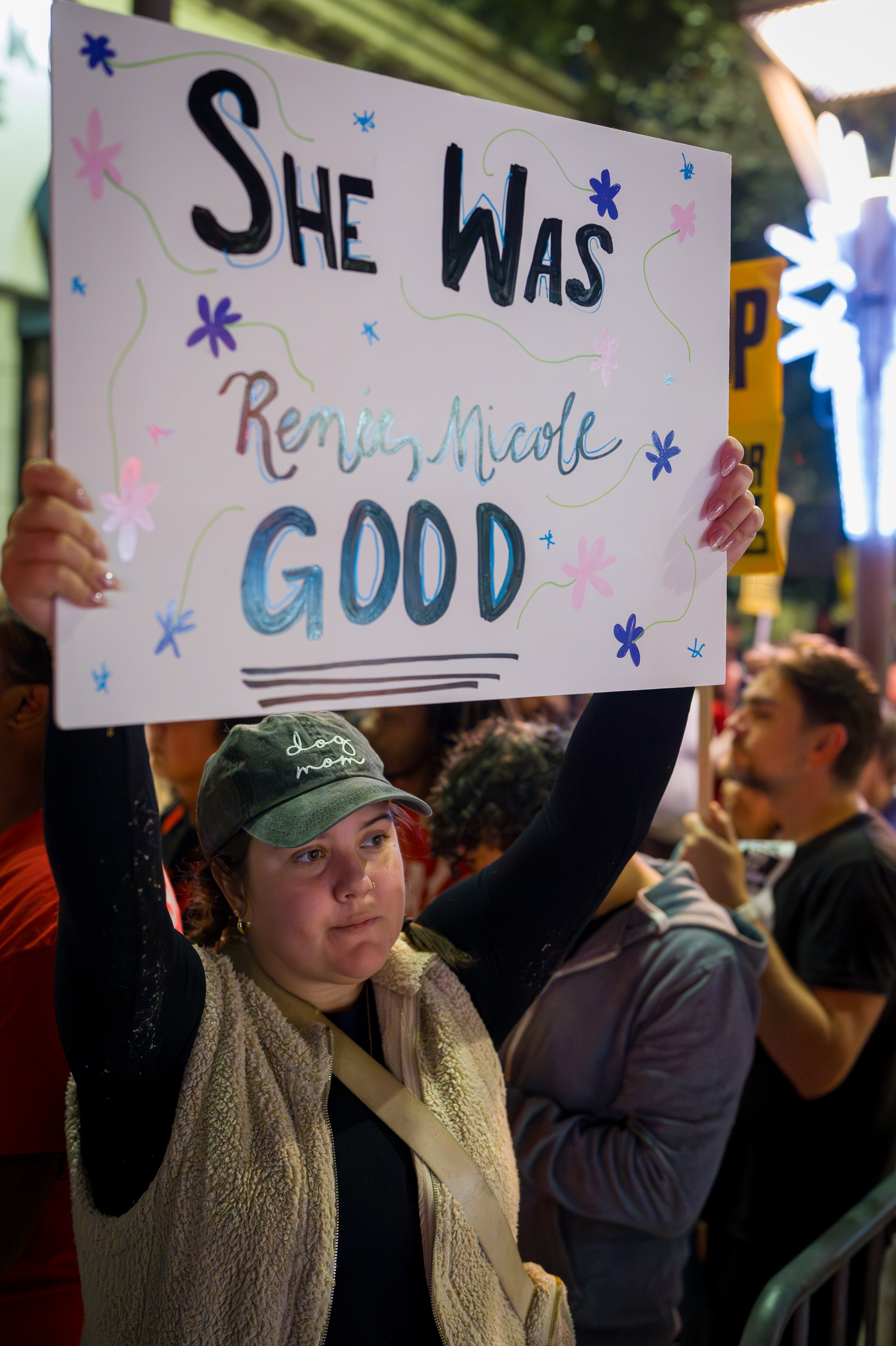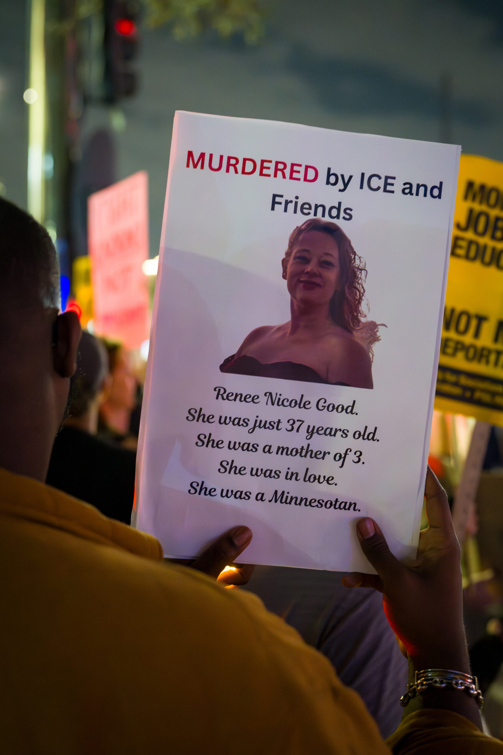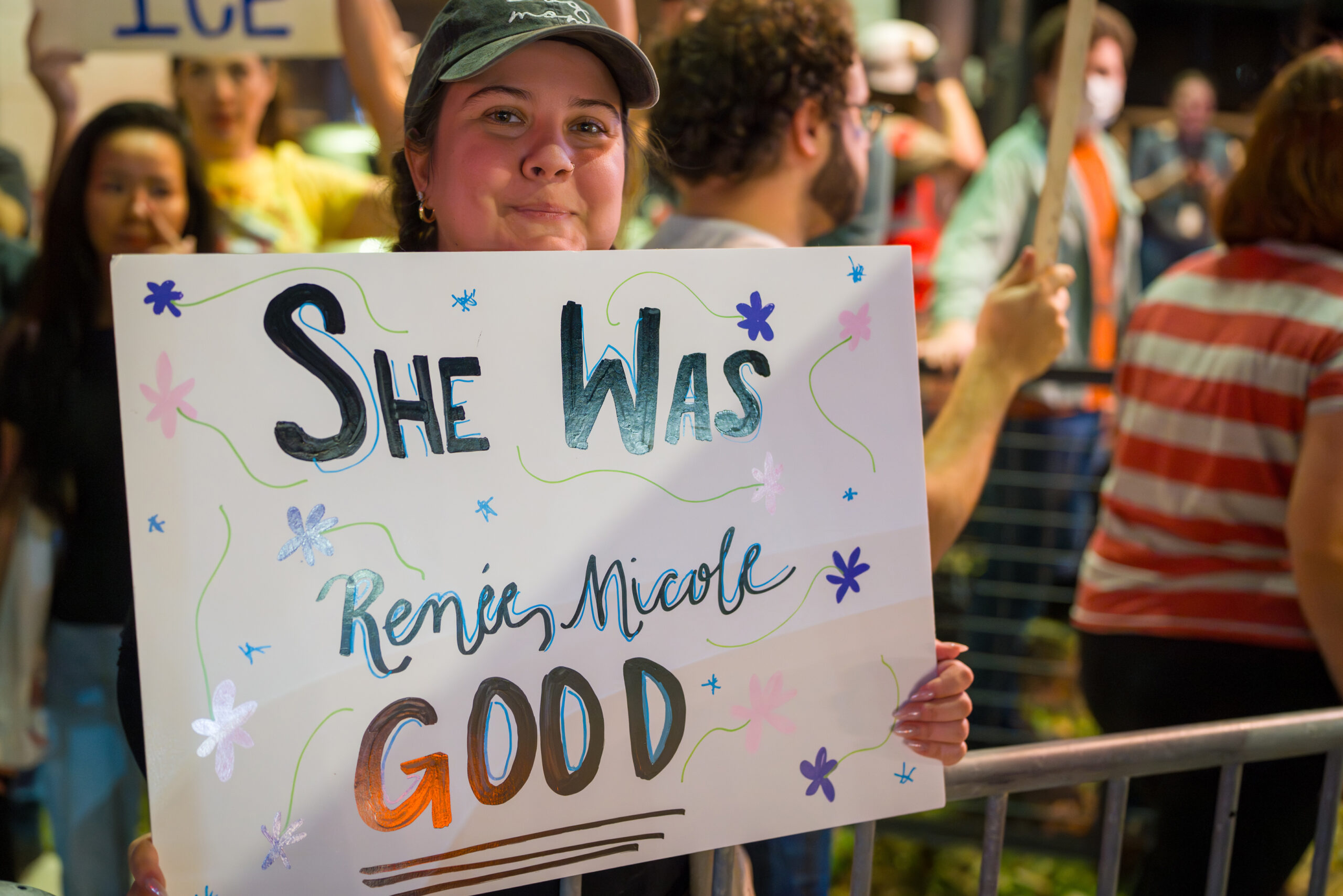 The tone of the rally balanced grief and resolve. Some attendees stood quietly with signs bearing Good’s name, while others led chants or spoke briefly about why they felt compelled to show up. For many, the protest was both a public demonstration and a moment of collective mourning.