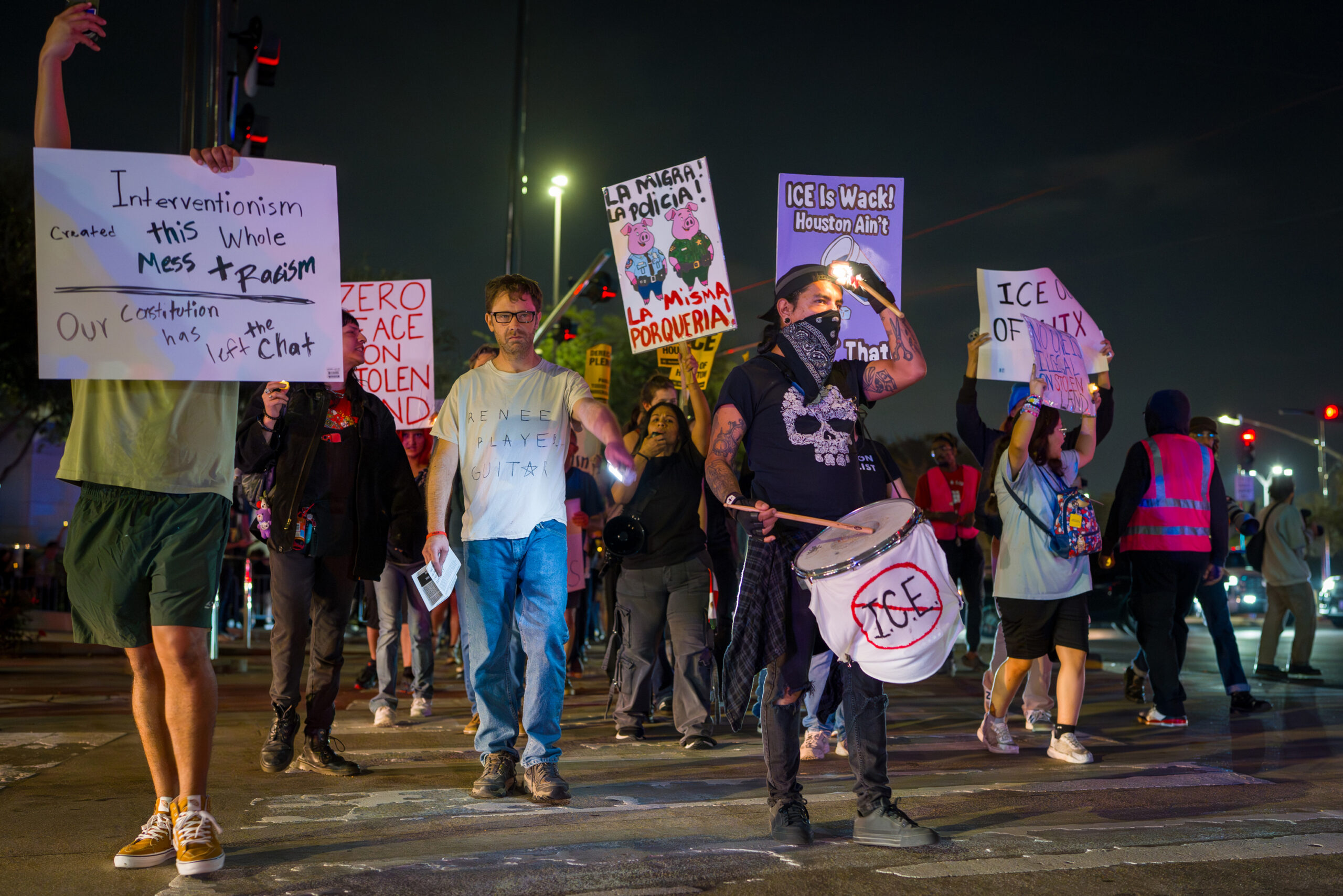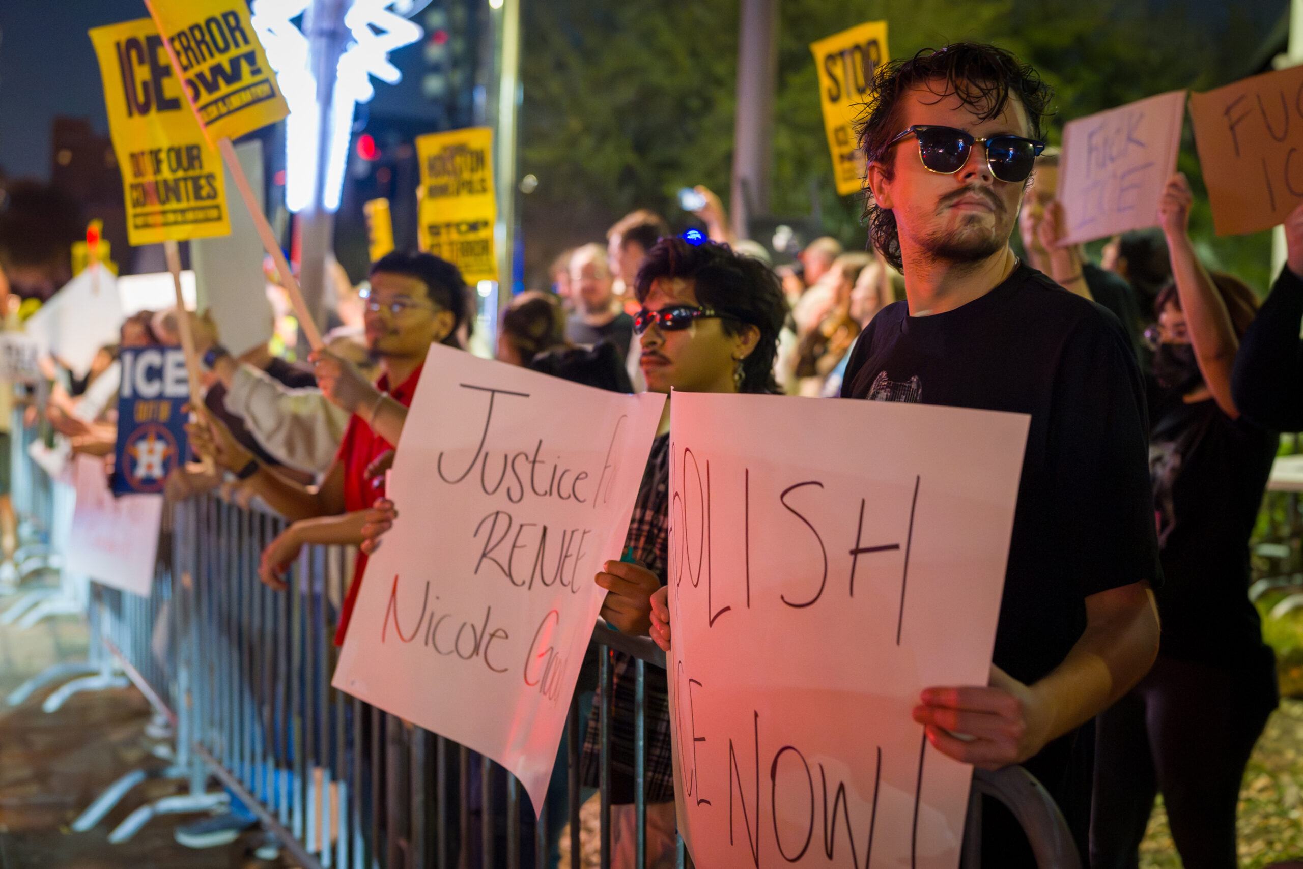 Good, who was married to a woman, has become a focal point for LGBTQ advocates and immigrant-rights organizers alike. At the Houston rally, speakers and attendees emphasized the human toll of enforcement actions, framing the issue not only as a matter of policy, but as a loss felt by families and communities. Protesters referenced the conflicting accounts surrounding the shooting and urged transparency as investigations continue.