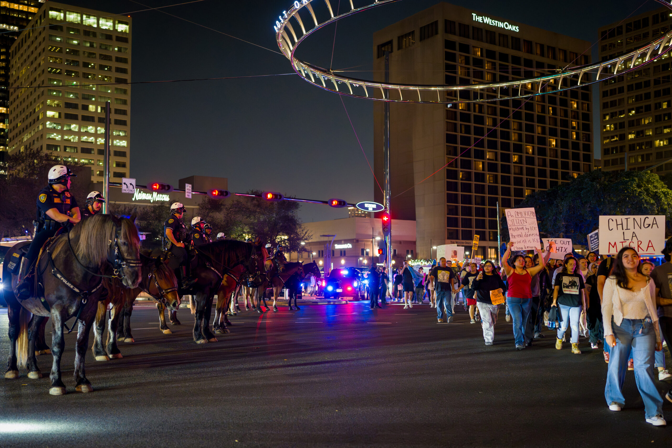 Hundreds of people gathered in Houston’s Galleria area this week to protest the killing of Renee Nicole Good, a 37-year-old woman who was fatally shot by an ICE officer in Minneapolis during a federal immigration operation earlier this week.