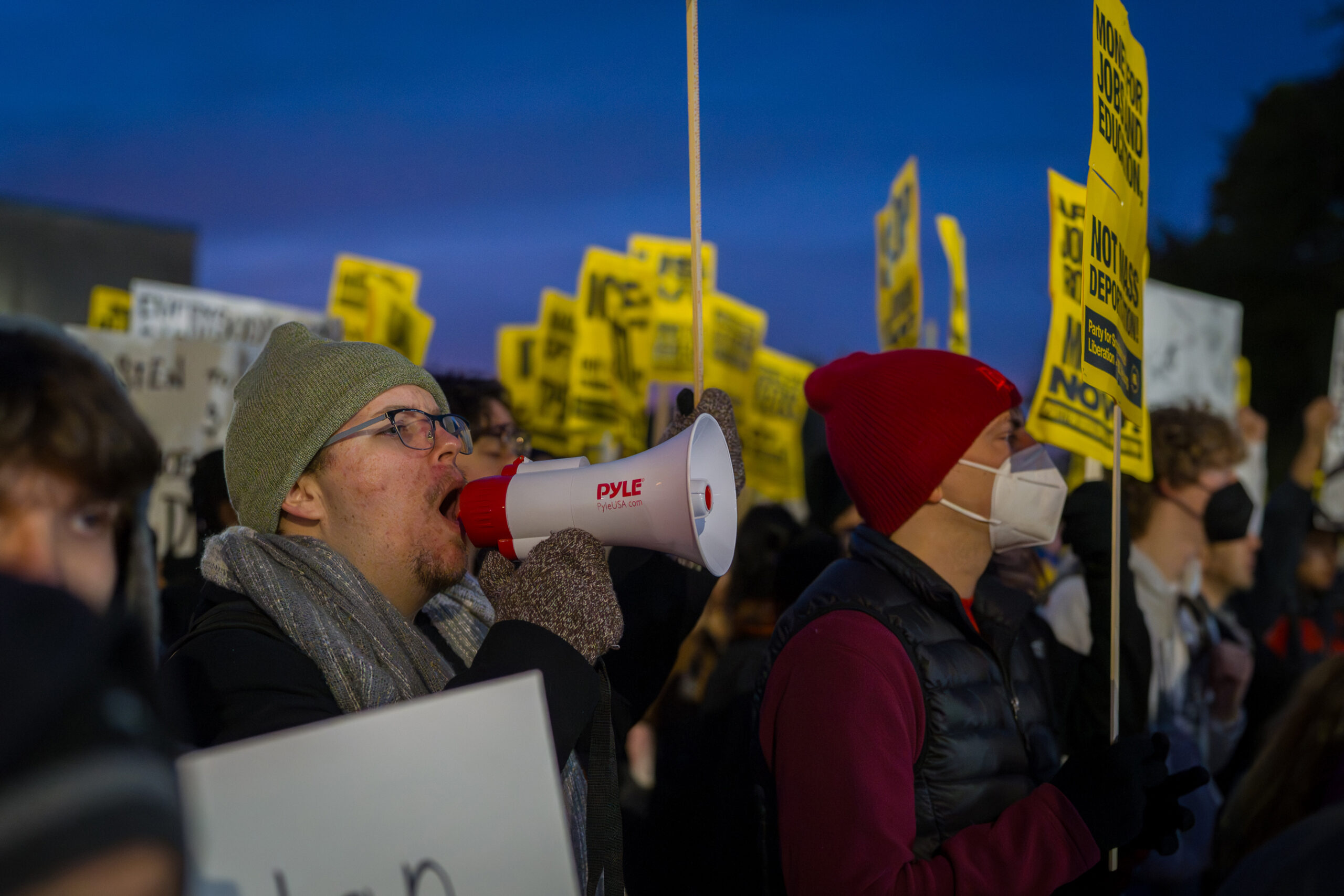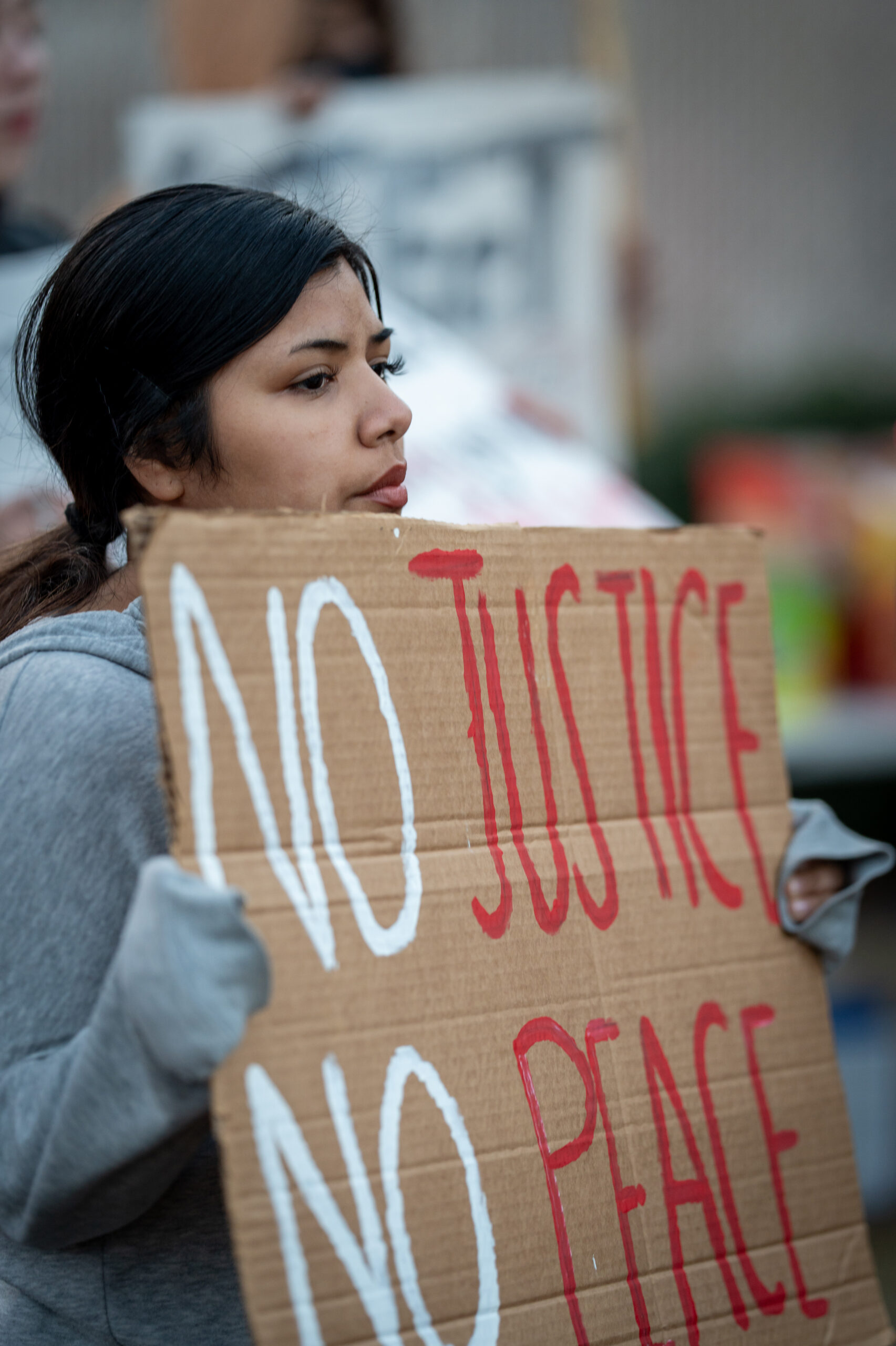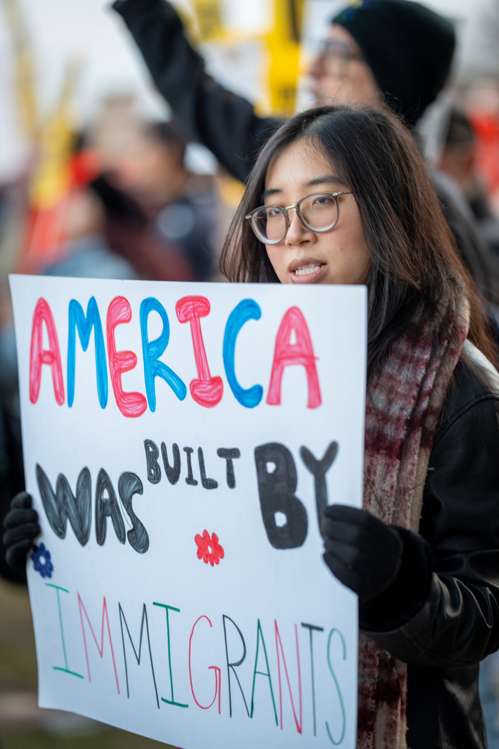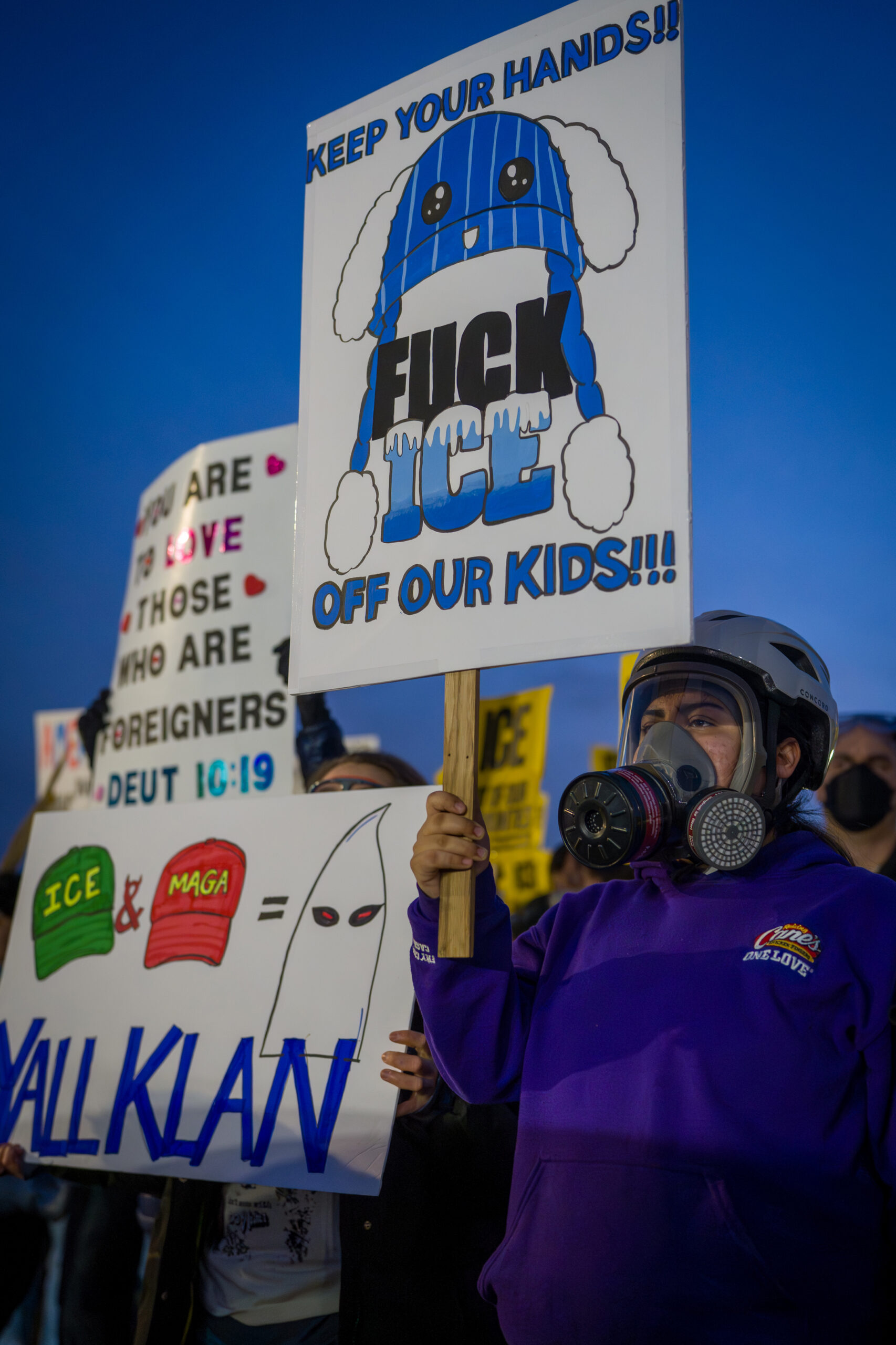 Protesters called attention to the connections between immigration enforcement and broader patterns of state violence. The demonstration was one of dozens of similar protests across the country following the events in Minneapolis.