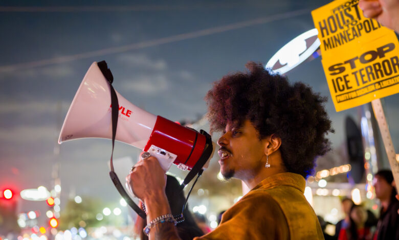 Hundreds gathered in Houston’s Galleria area to protest the killing in Minneapolis of Renee Nicole Good by an ICE officer,…