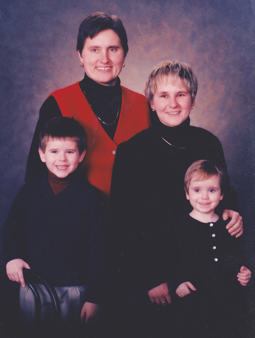 Growing pains of a different kind: a family portrait after the first commitment ceremony of Zach Wahls’s moms.