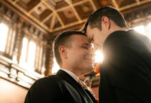 “When we started planning our wedding, we knew that we wanted to have back-to-back Indian and Christian weddings to honor both of our families,” shares Thadhani. “And since we both have family in Los Angeles [and same-sex marriage was not yet legal in Texas], we decided to get married in L.A. We spent a long weekend checking out venues, and when we saw the Beverly Hills Greystone Mansion, we both said at the same moment, This is it!”