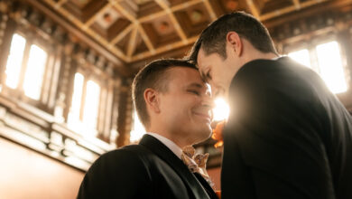 “And since we are not religious at all, we exchanged the standard vows minus the religion,” says Pearce. “We wanted the ceremony to be about us, our love for one another, and our love of our families. While holding each other’s hands, we recited the following: