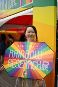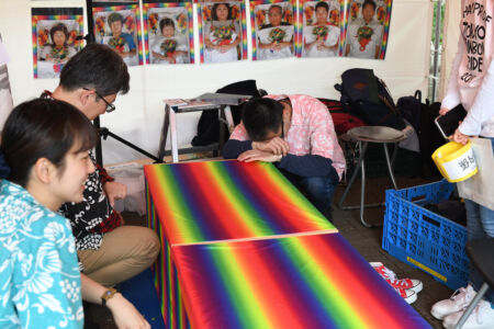 People of all ages gleefully took turns creating fun memories. Inside this area were additional facts and figures next to a thoughtful rainbow-colored “action wall.” This section highlighted moments of activism and the change-makers who were working toward equality. Not only was this display visually interesting, it highlighted the many concerns that LGBTQ people in Japan must face without having laws in place to protect them. It successfully accomplished its intended educational purpose, and was certainly one of our favorite stops in the festival.