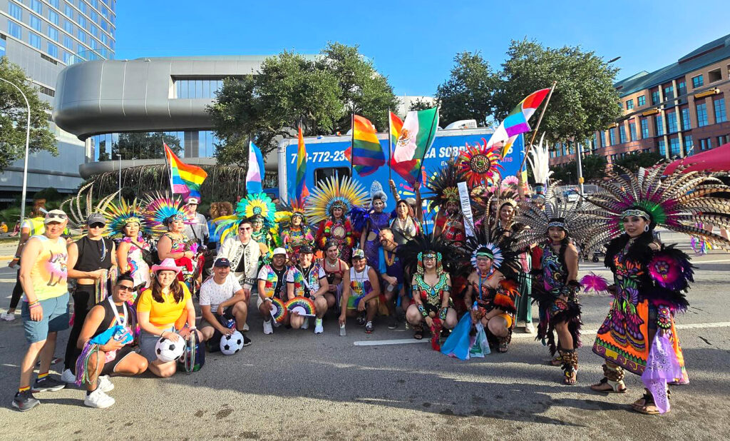 Every year, FLAS has a walking unit in Houston’s annual Pride parade. This year, a large walking unit of mostly FLAS volunteers moved down the parade route—some wearing T-shirts, others passing soccer balls to each other, and a group that danced wearing colorful indigenous Mexican outfits.