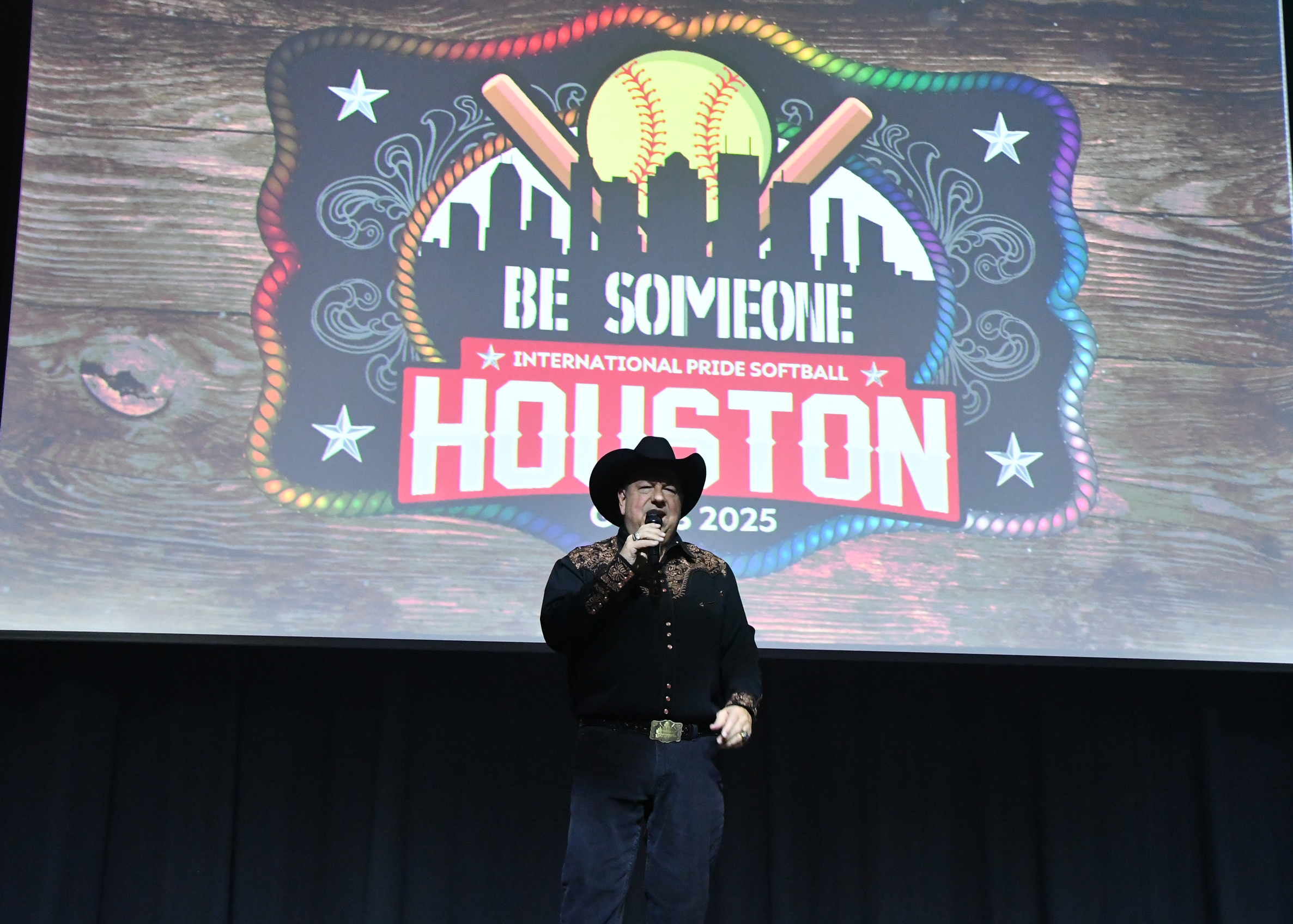 In between the performances, speakers delivered impactful messages. District H Council Member Mario Castillo—the lone out member of Houston City Council—delivered remarks welcoming GSWS members to the city and read a proclamation from Houston Mayor John Whitmire: “Rooted in the spirit of inclusivity and perseverance, the Gay Softball World Series stands as one of the largest annual LGBTQ sporting events in the world, drawing teams from across the U.S. and beyond to share the joy of the game and power our community,” he read. “Houston’s own Montrose Softball League Association has played an instrumental role in shaping the legacy of LGBTQ sports in our city, offering a safe, affirming place for athletes of all backgrounds.”