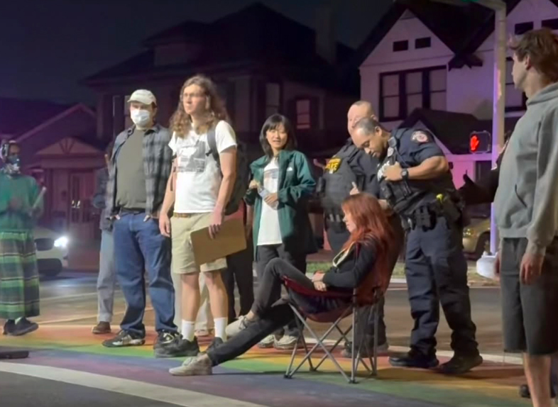 The clash began around 2:00 a.m. at Westheimer Road and Taft Street, where city contractors arrived to grind down the rainbow-painted crosswalk. Protesters sat across the intersection, blocking heavy machinery until Houston Police Department’s Special Response Group was called to clear the roadway.