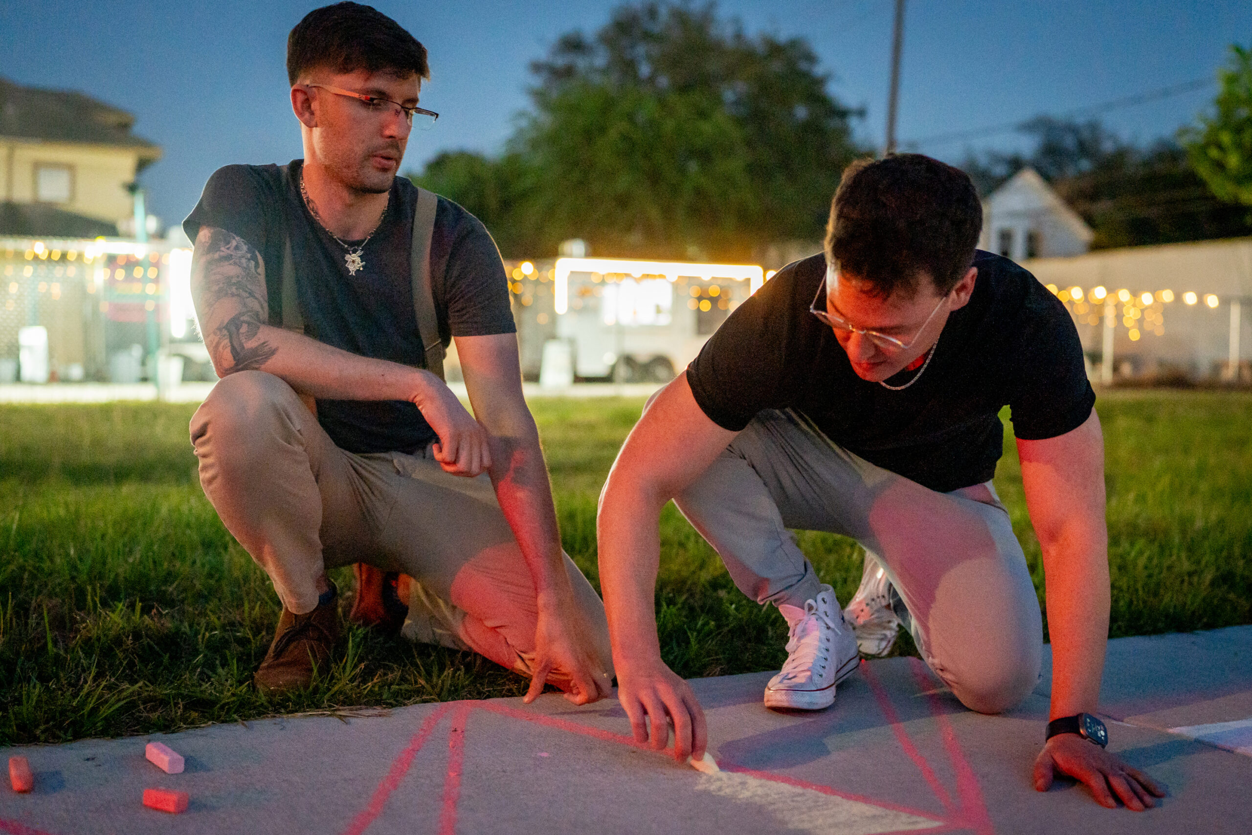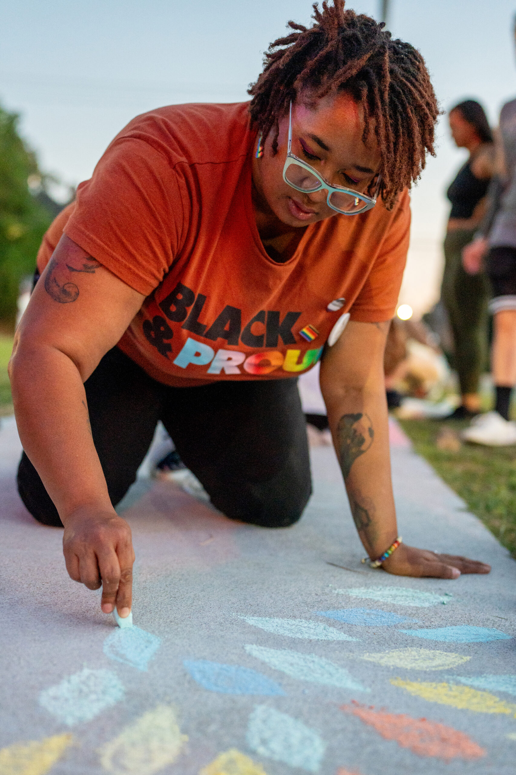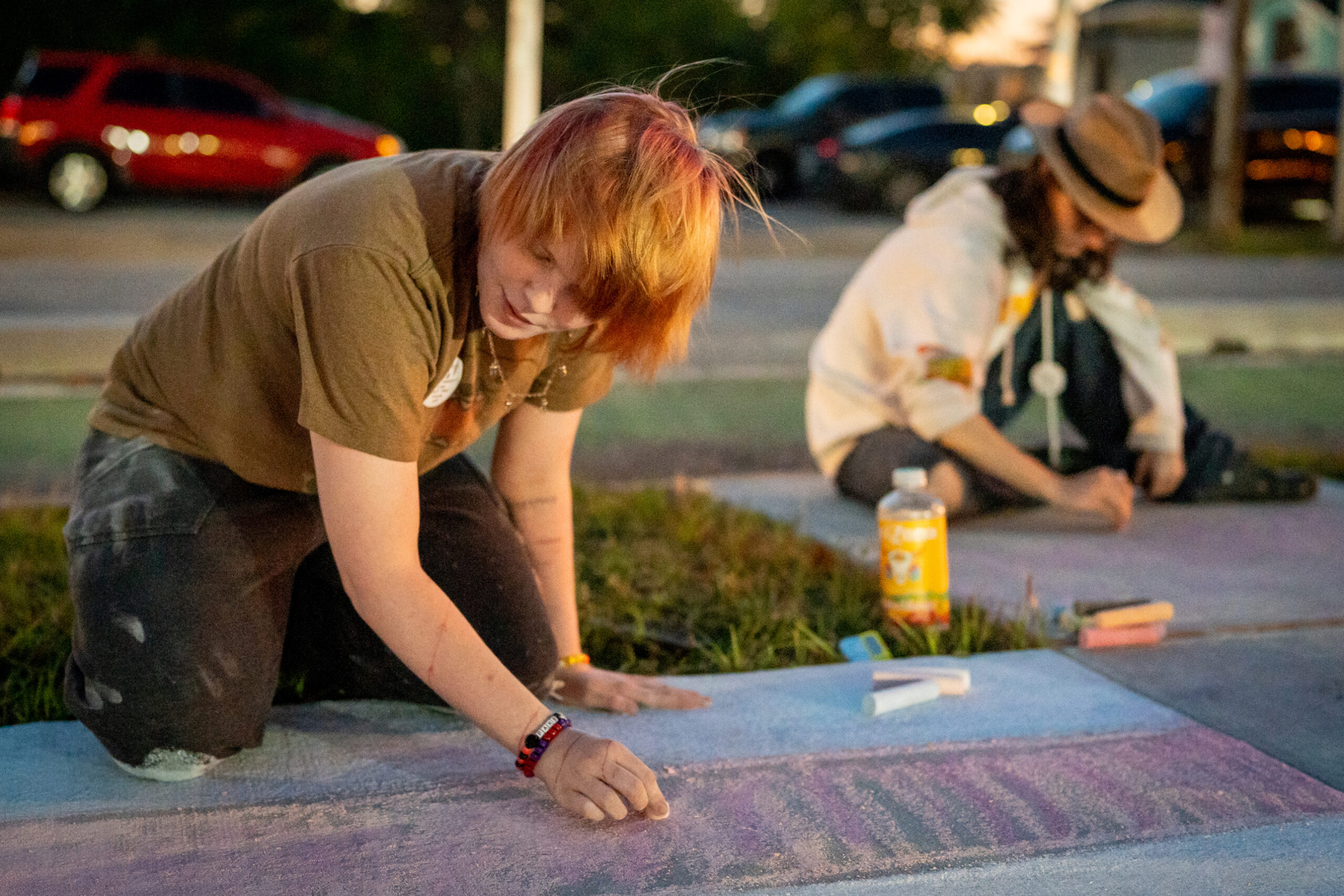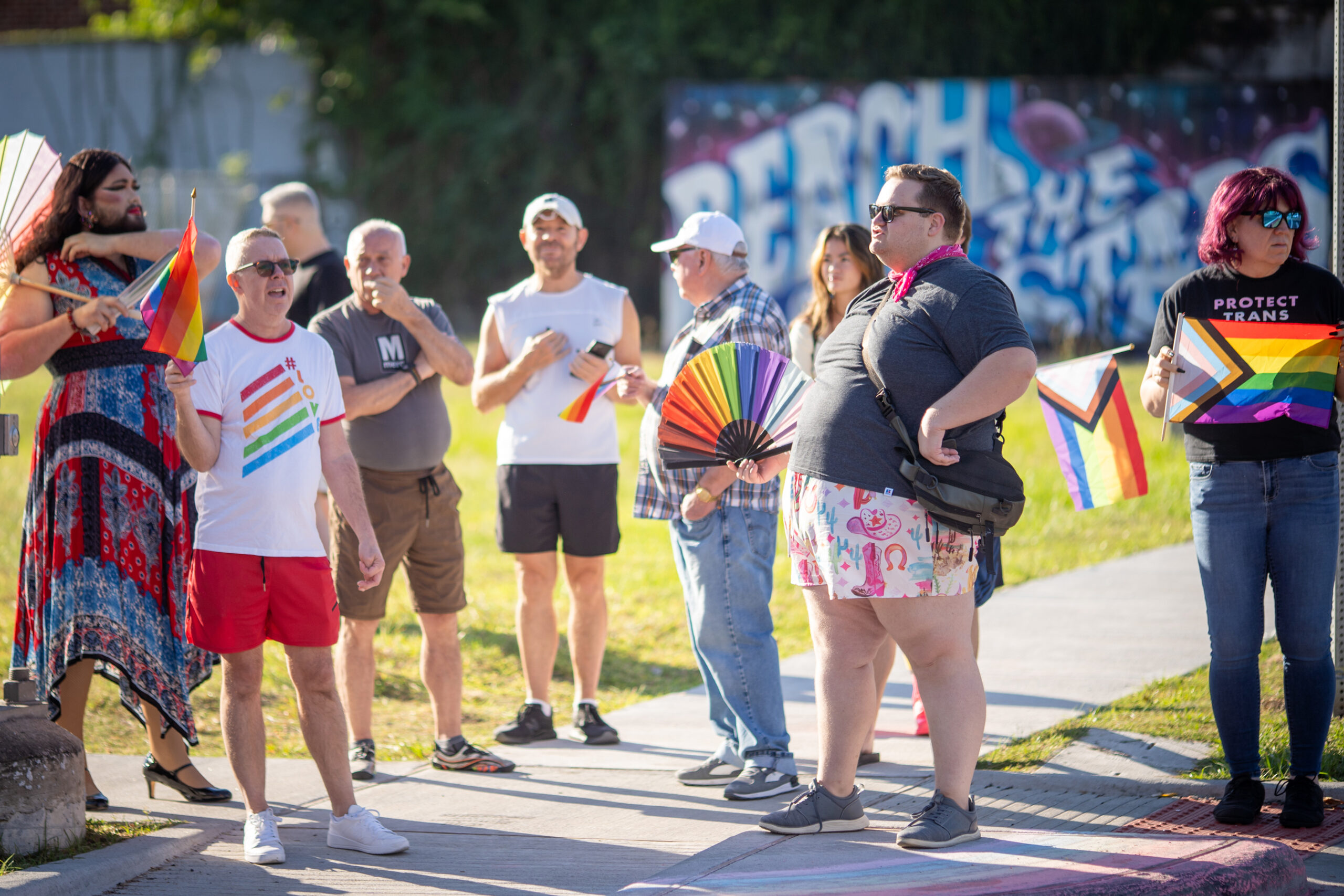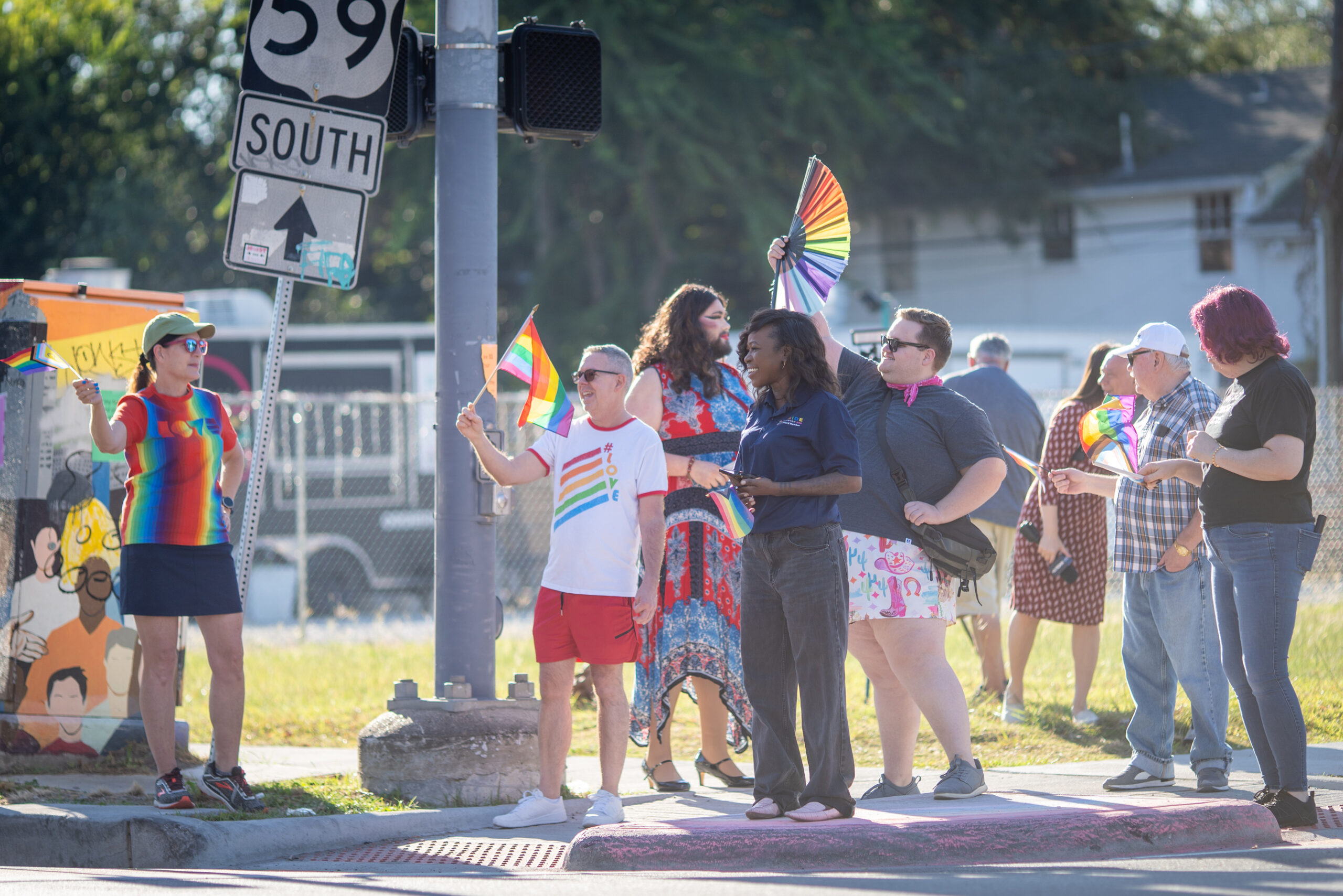 Over the weekend, members of Houston’s LGBTQ community and allies gathered at the intersection of Taft and Westheimer to protest the removal of the Montrose Pride crosswalk. Waving flags and carrying handmade signs, participants maintained a peaceful presence throughout the weekend, joined by local media and artists who transformed the surrounding sidewalks with chalk art messages of solidarity.