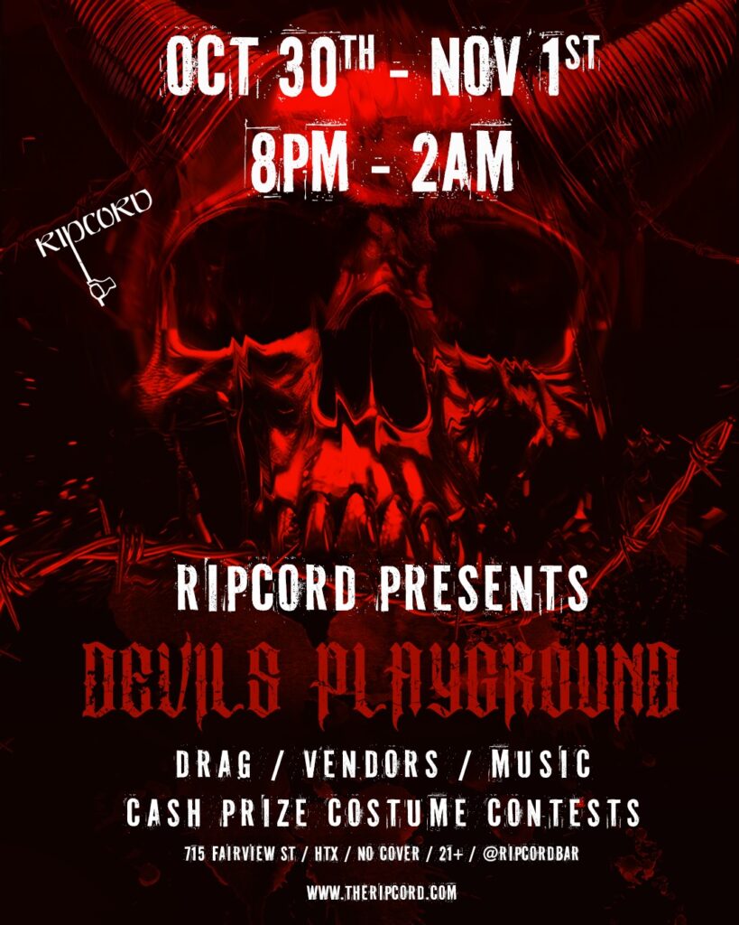 Ripcord Houston is throwing a 3-night Halloween block party packed with drag shows, vendors, and cash costume prizes every night. Through Saturday. 715 Fairview St. 8 p.m.