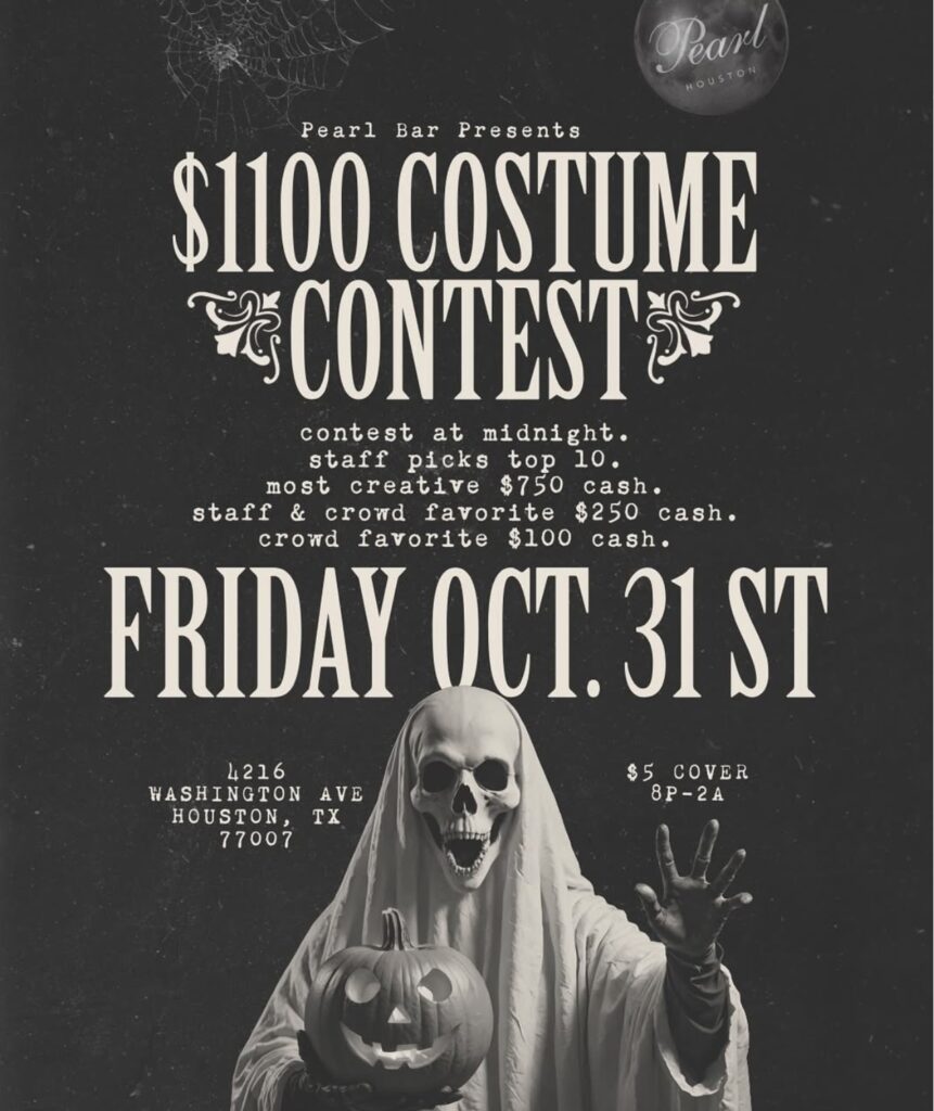 Pearl Bar celebrates Halloween 2025 with a costume contest with $1100 in cash prizes in Most Creative, Staff Favorite, and Crowd Favorite categories. 4216 Washington Ave. 8 p.m.