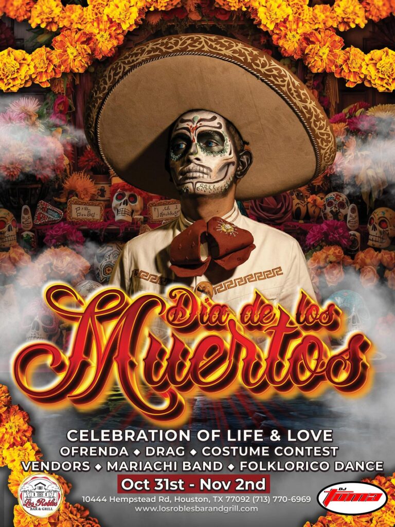 Los Robles Bar and Grill honors Dia de los Muertos all weekend with a community ofrenda, drag shows, a costume contest, mariachi band, and more. Through Sunday. 10444 Hempstead Rd. 8 p.m.