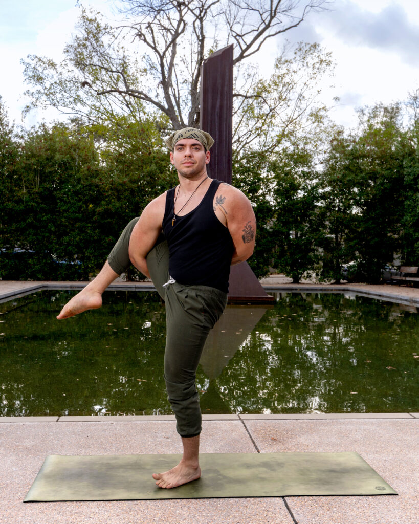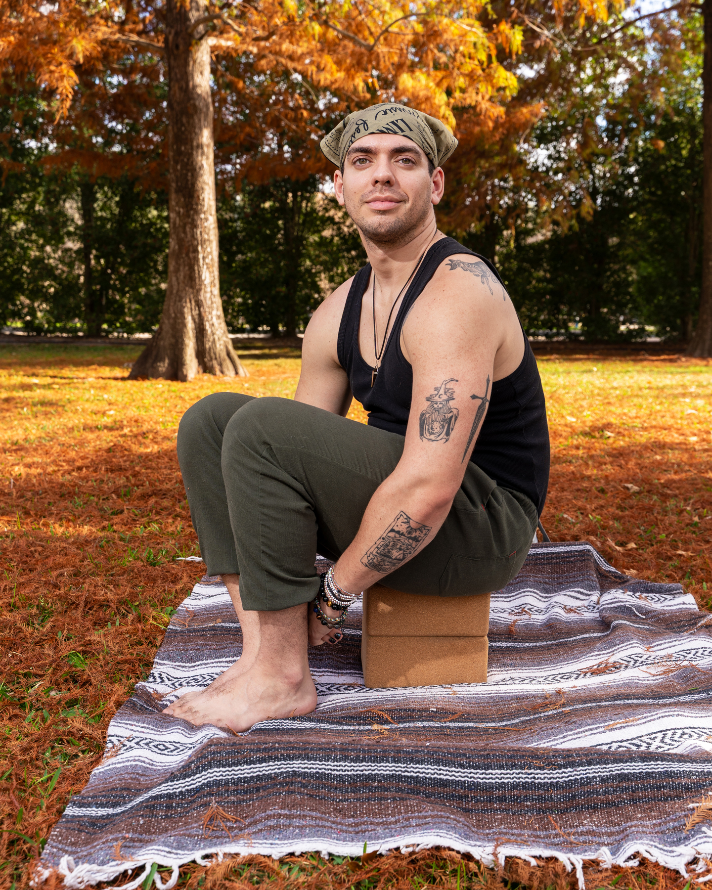 Yoga, he insists, extends far beyond physical postures. “Yoga can absolutely show up as, ‘I’m going to go on a walk outside,’” he says. “I’m just going to notice the trees, I’m going to notice the breeze and give myself some space and some breath just to be, exist, and feel.” His own mat has borne witness to all of it. “I have cried on my mat. I have been very angry and yelled on my mat,” he explains. “My mat has seen me at my best. It’s seen me at my worst.”