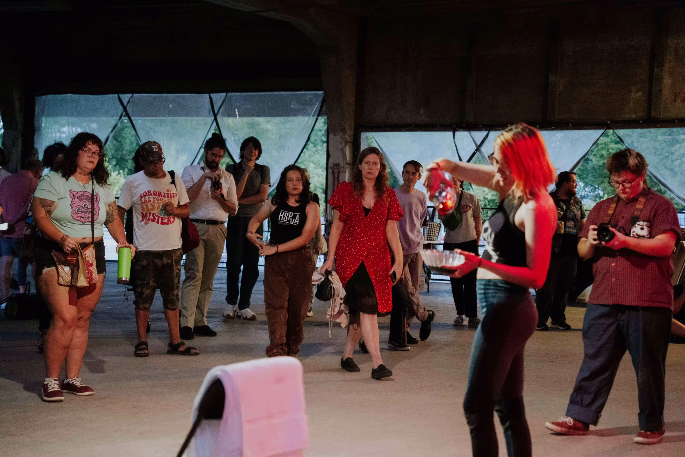The Happening is a unique experience every time. “No two Happenings are ever the same,” says Whit with a shrug. “To describe The Happening as one event would be really hard, but I can give you an example of what a recent Happening was like. We had a witch’s circle, and then a photo shoot. There was an album release, and then a cardboard puppet show! Then we had Dr. Aisen, who is an experimental artist and also a medical doctor who designs medical equipment, get up on stage and play experimental music. In between songs, she pulled out a syringe and injected these two pearls with something that was unknown to the audience. Then at the end of the show, we found out that she had married two female eggs together and inseminated them. You can bring people in for kind of a surprise experience—they’re there for one thing, but then they can be introduced to another.”